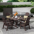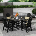 Gather family and friends for a relaxing meal with this beautiful 5-Piece dining set. This all-weather dining set seats up to four people and is ideal for casual dining on the patio, deck, or any outdoor space. The sturdy dining table provides a spacious surface, while the dining chairs feature gently arched backrests ready for dinner, games, and more. Constructed of durable HDPE poly plastic and rust-resistant hardware that will last the test of time.