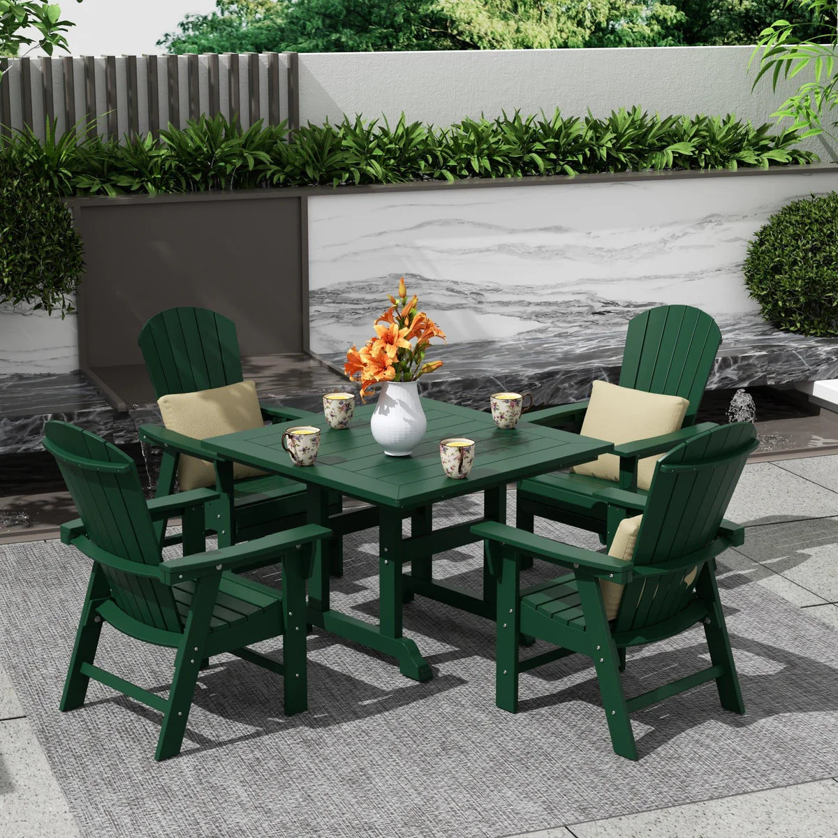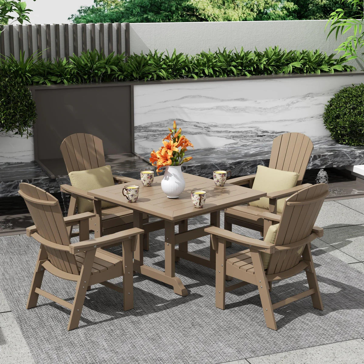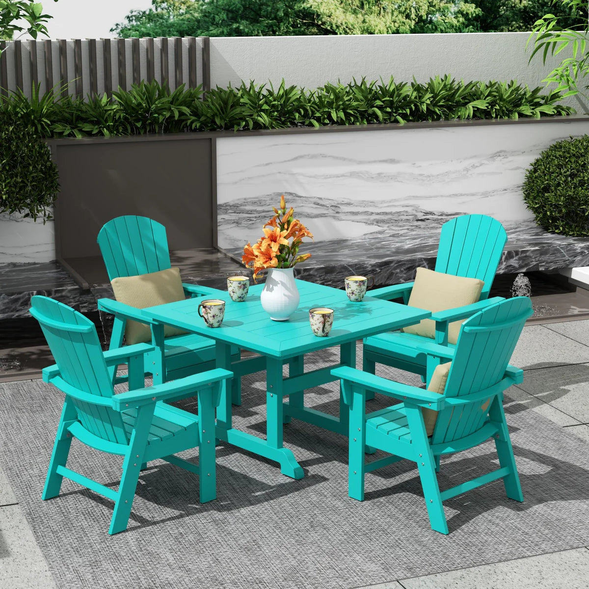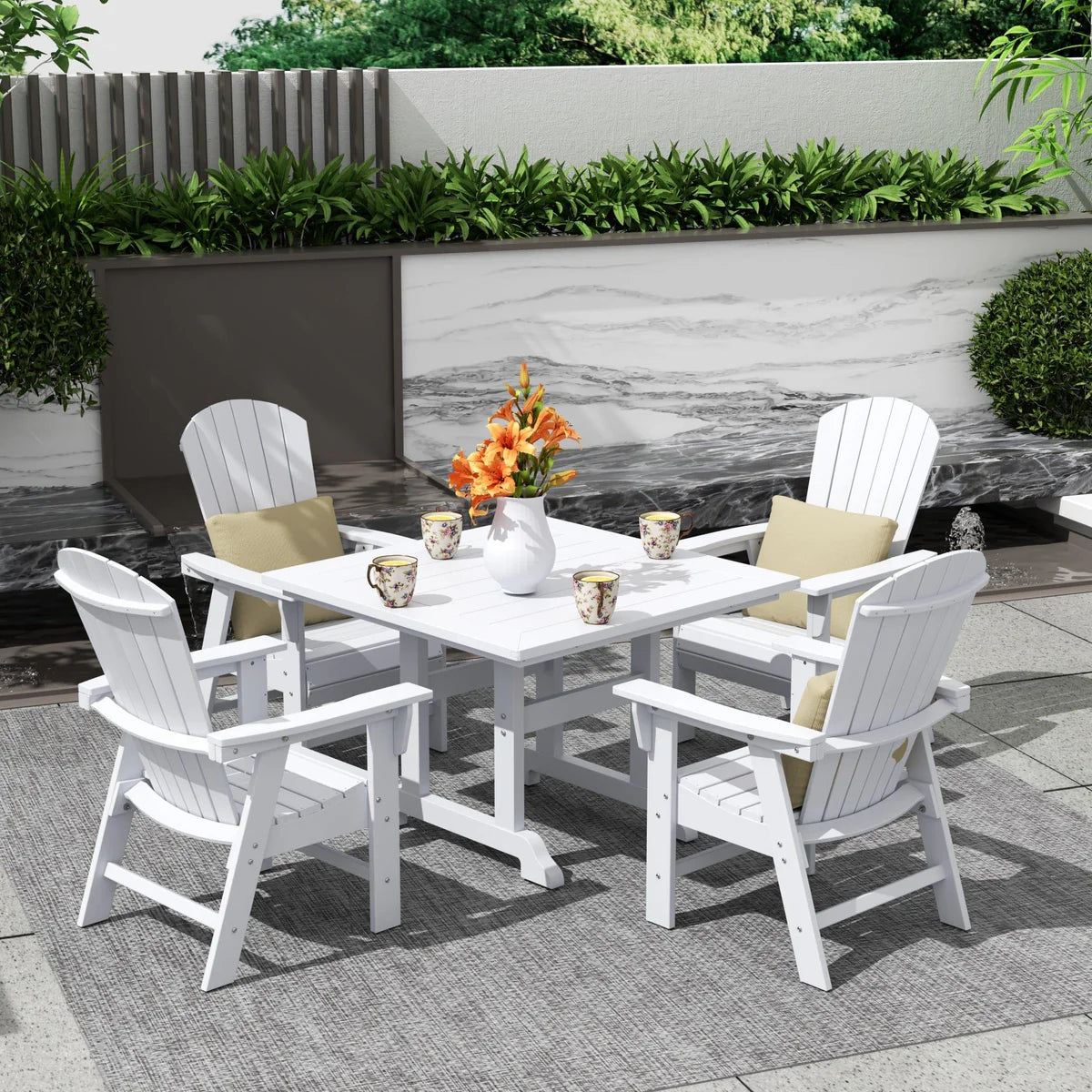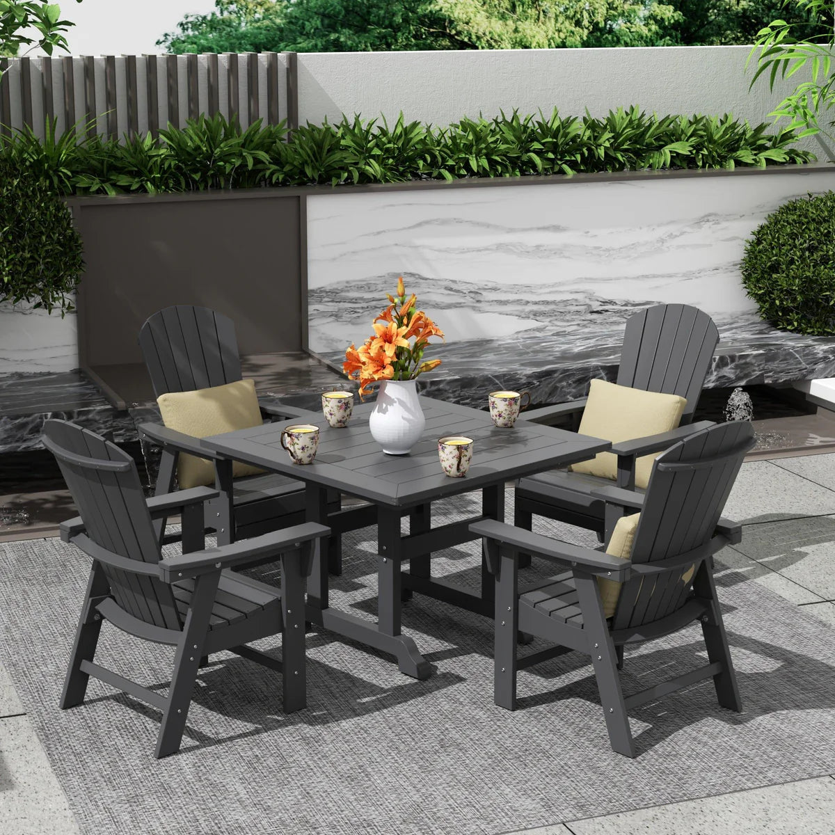 5-Piece Square Dining Table and 6-Slat Adirondack Style Chair Set