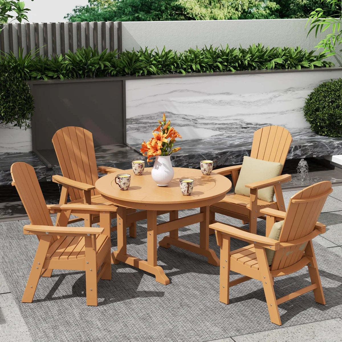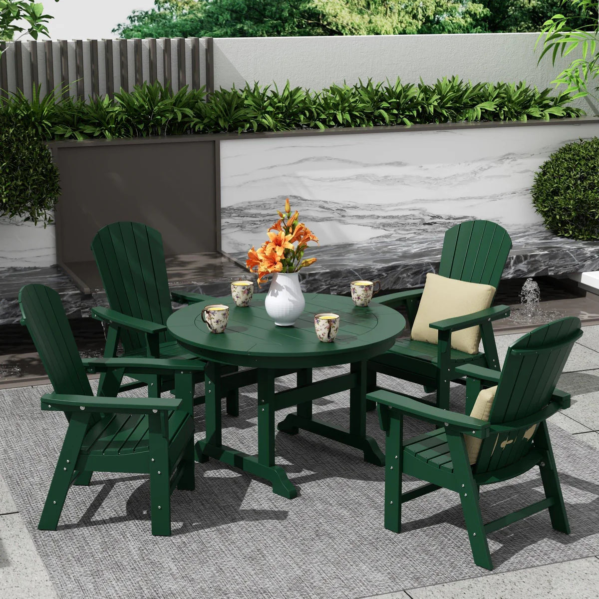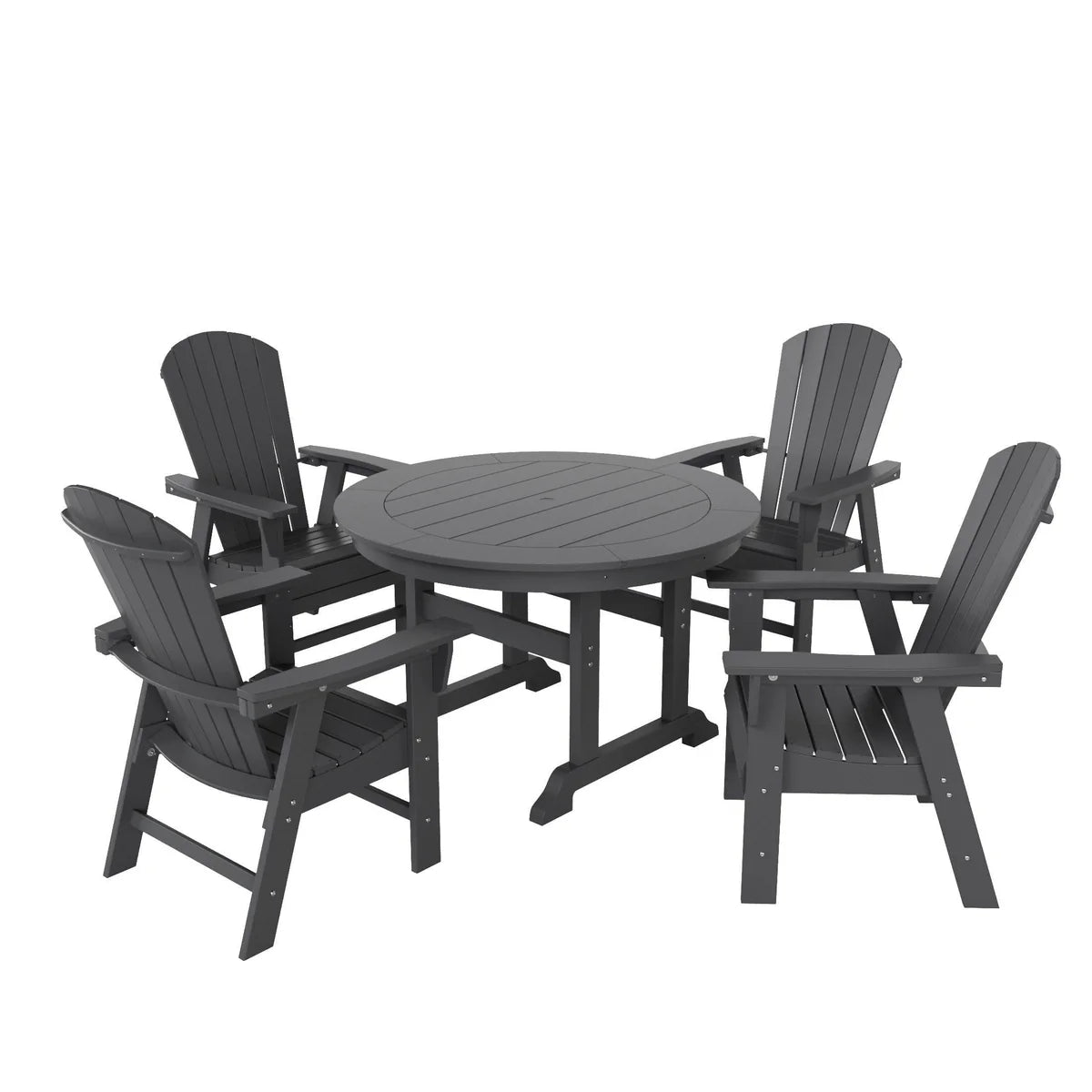 5-Piece Round Dining Table and 6-Slat Adirondack Style Chair Set
