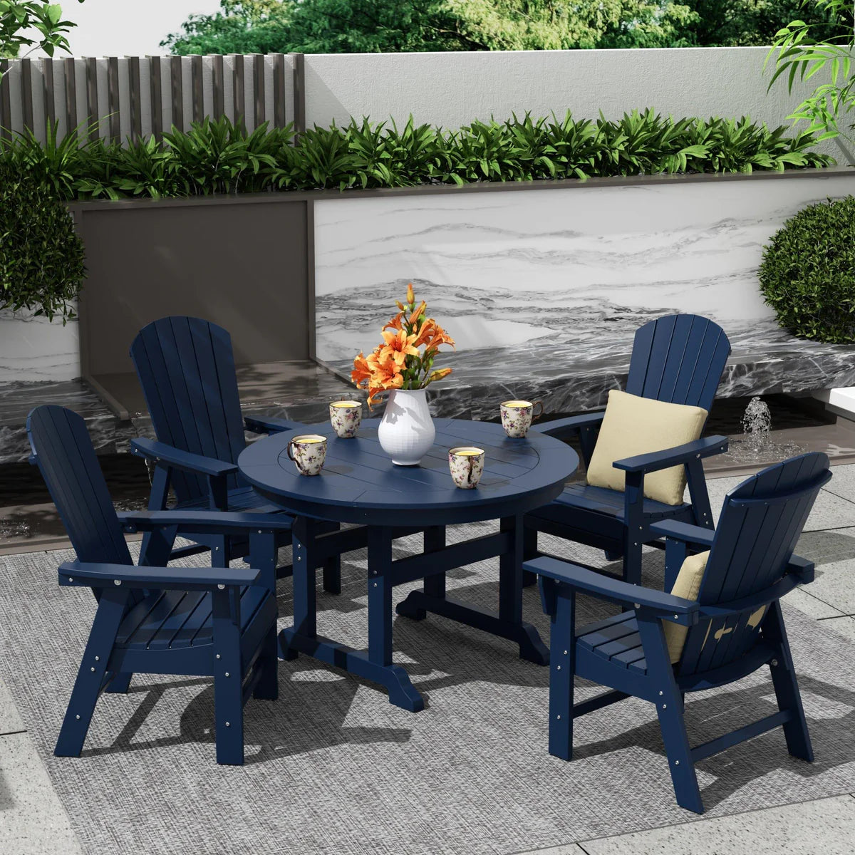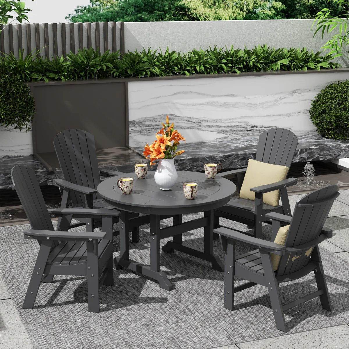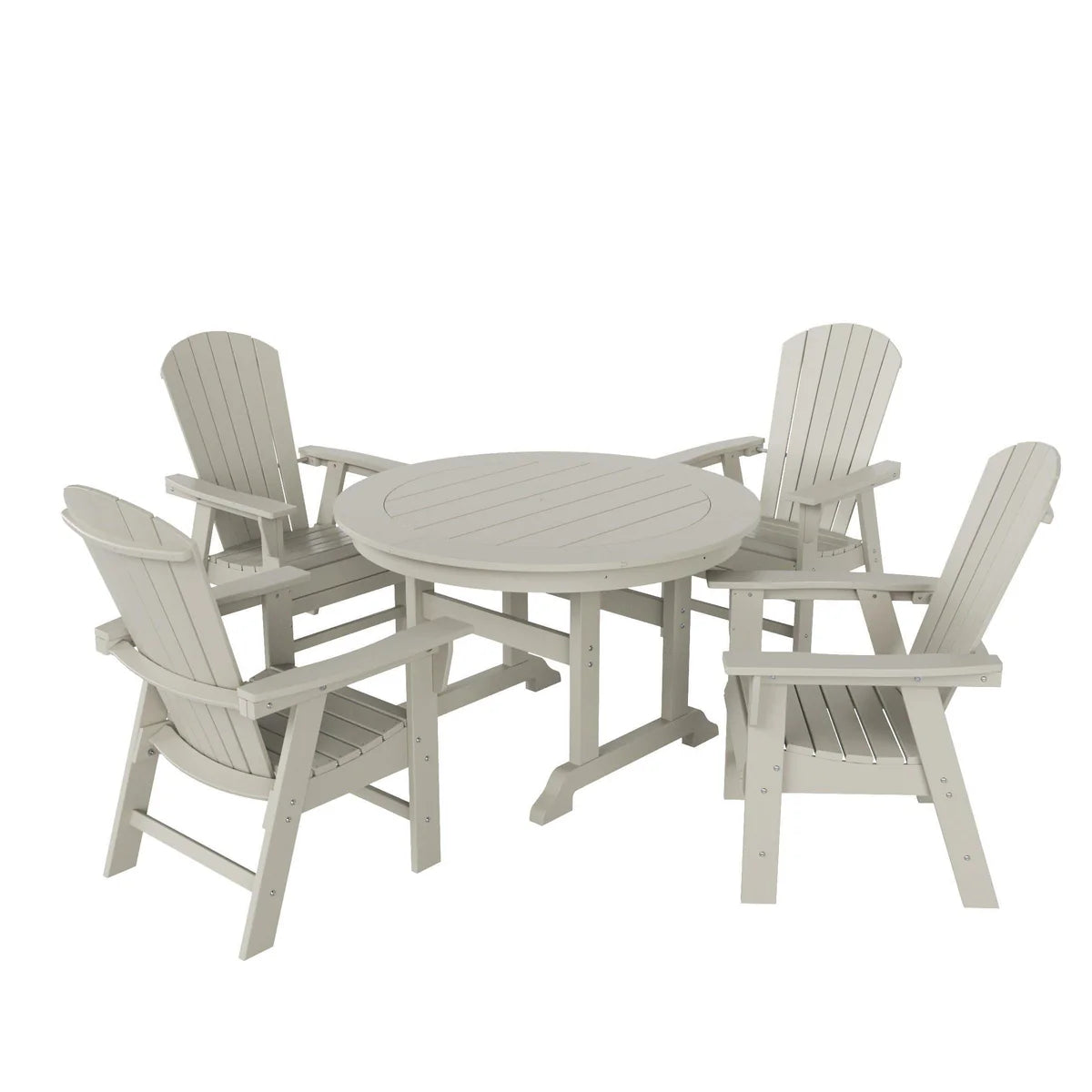 5-Piece Round Dining Table and 6-Slat Adirondack Style Chair Set