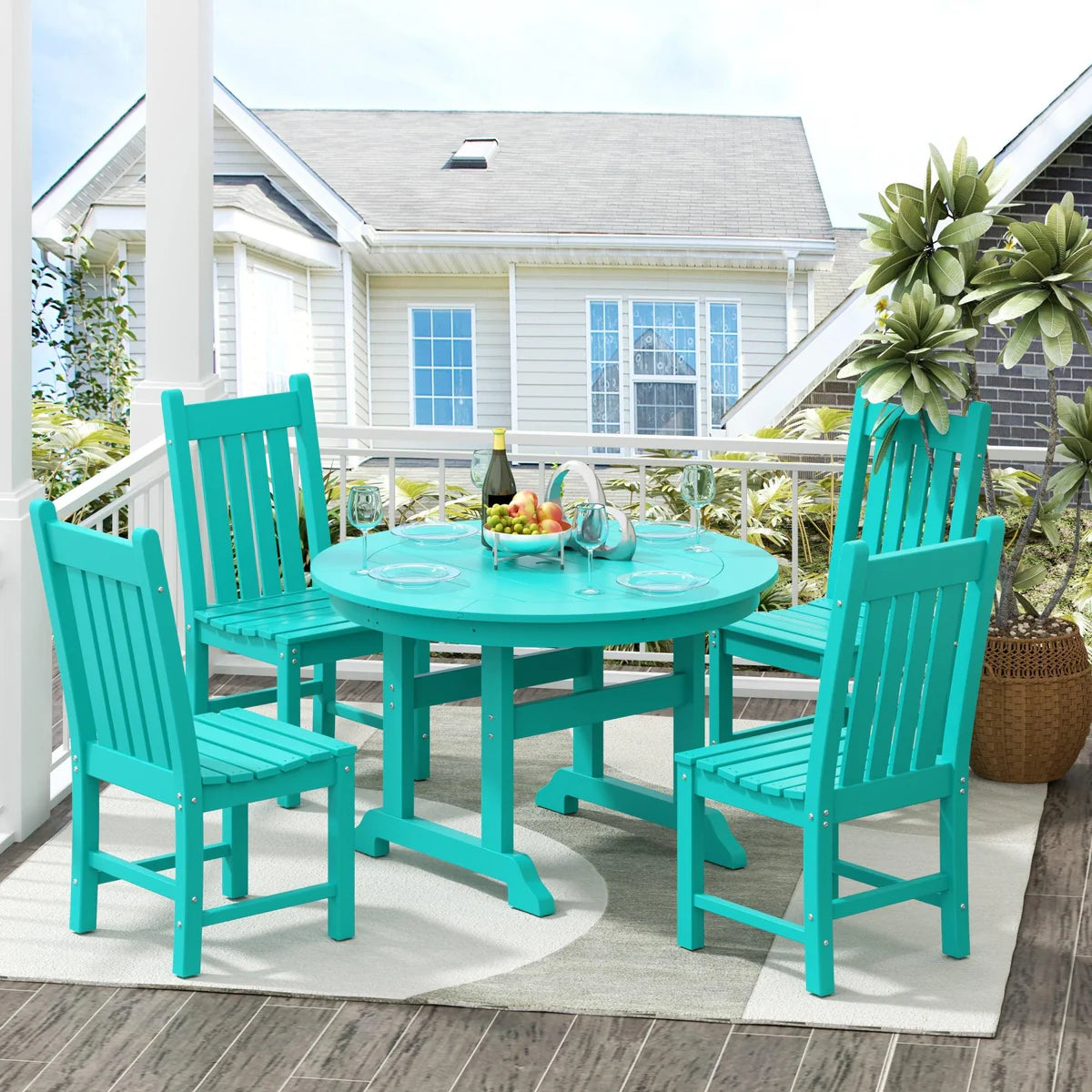 These six turquoise chairs are just perfect for our fire pit area. Solid and easy to clean. Heavy and well made. Beautiful !!!