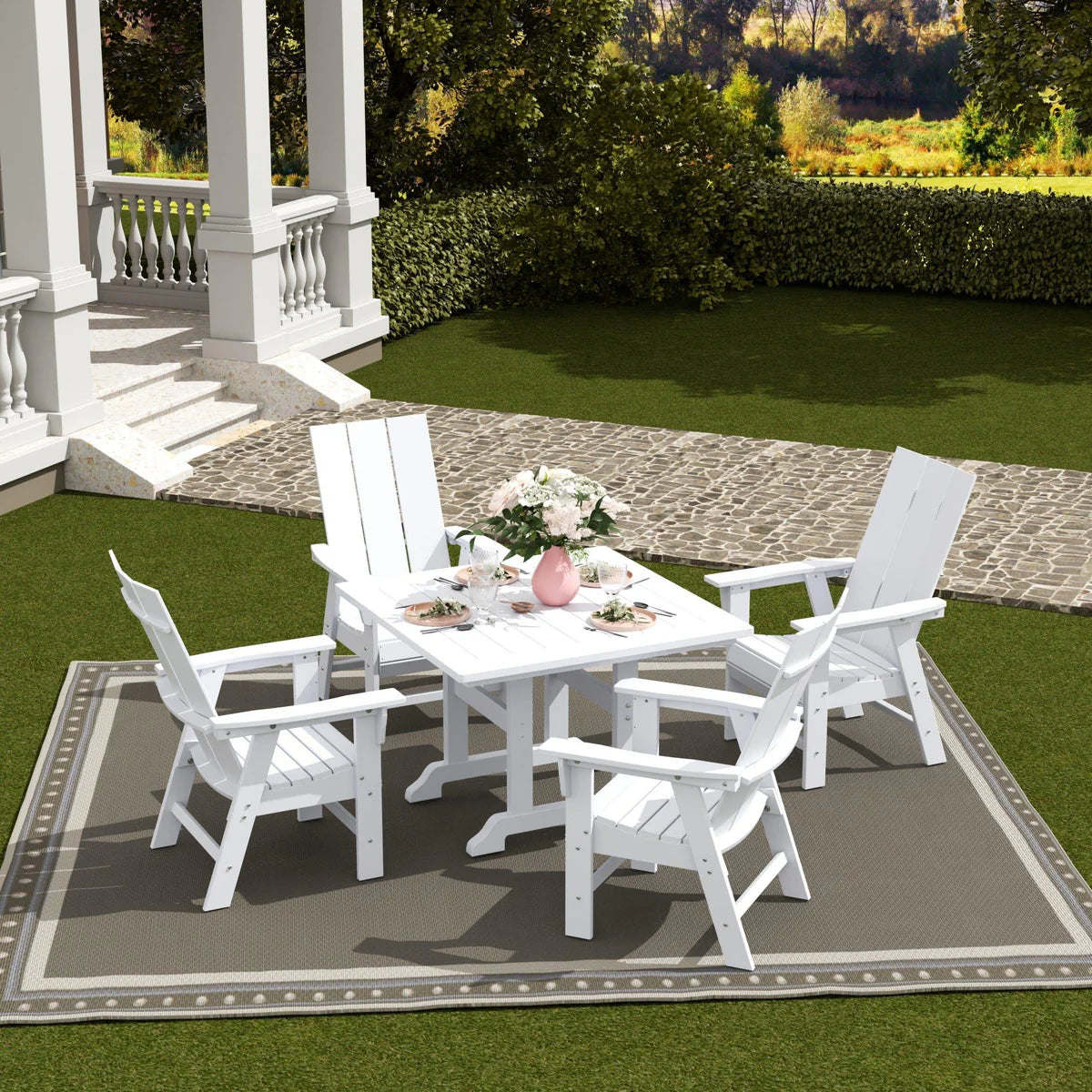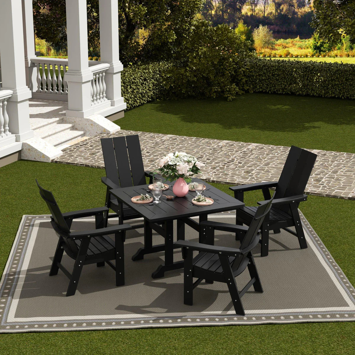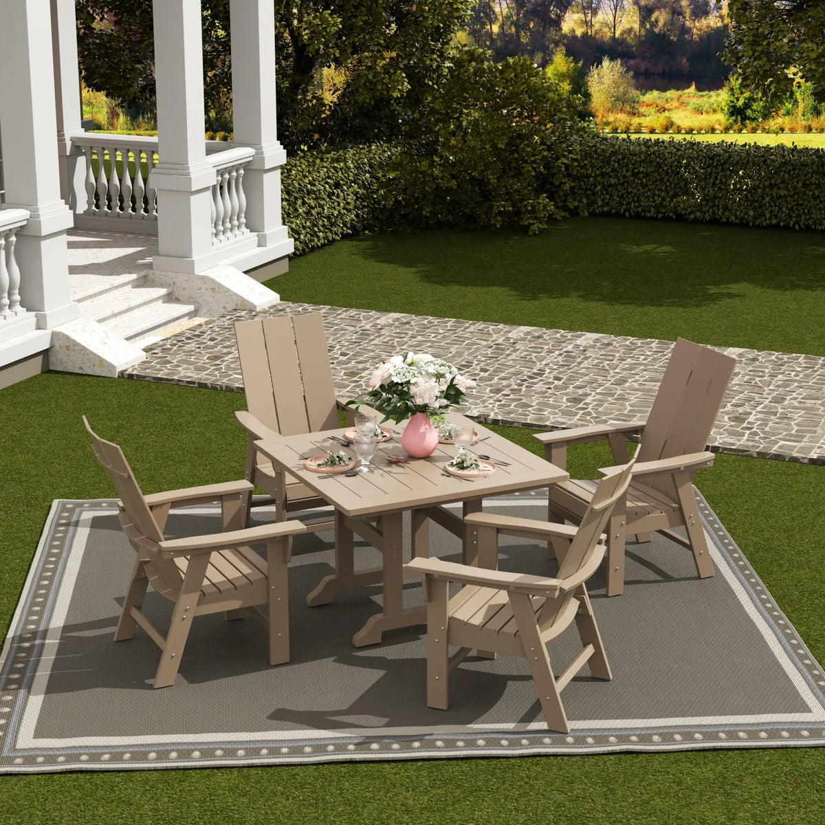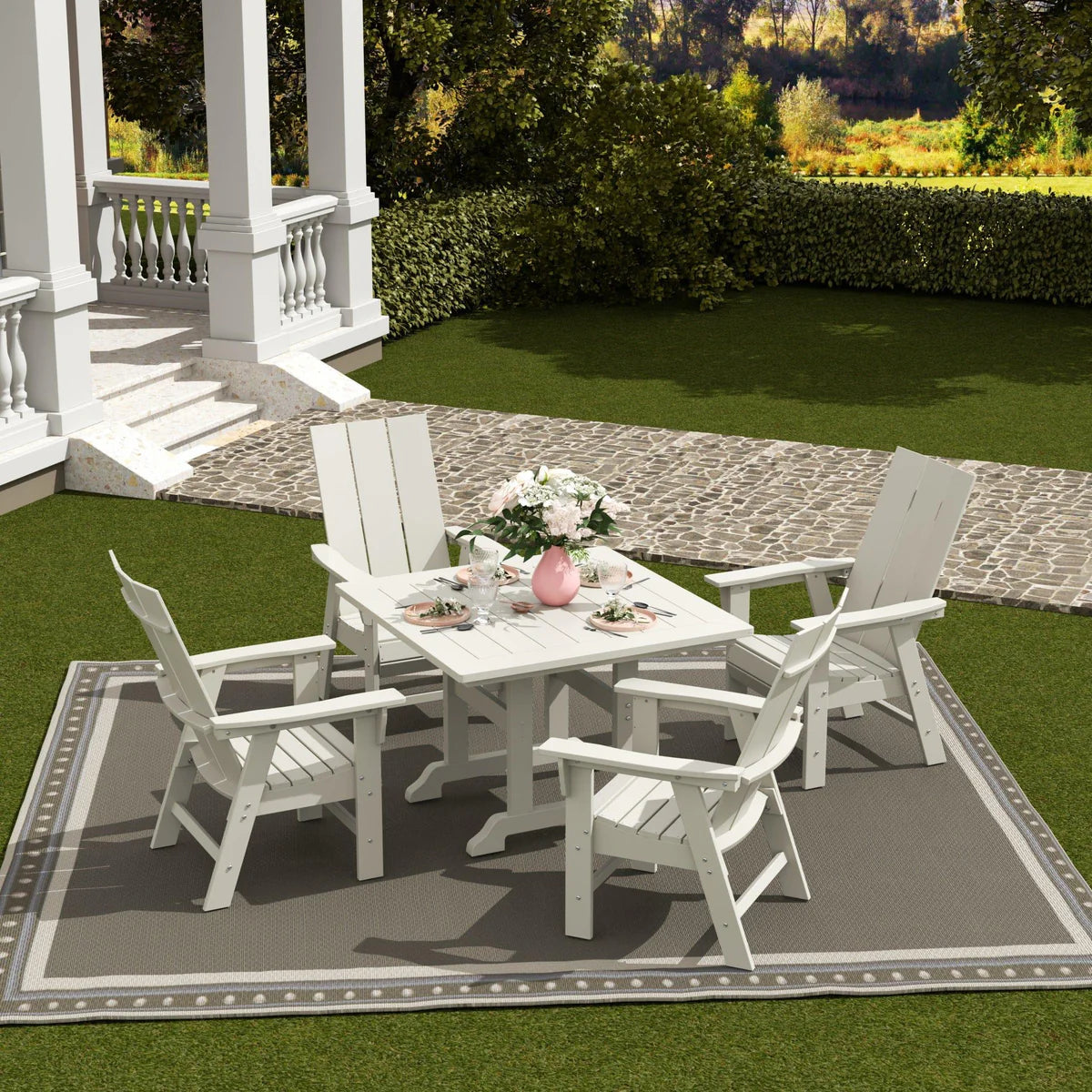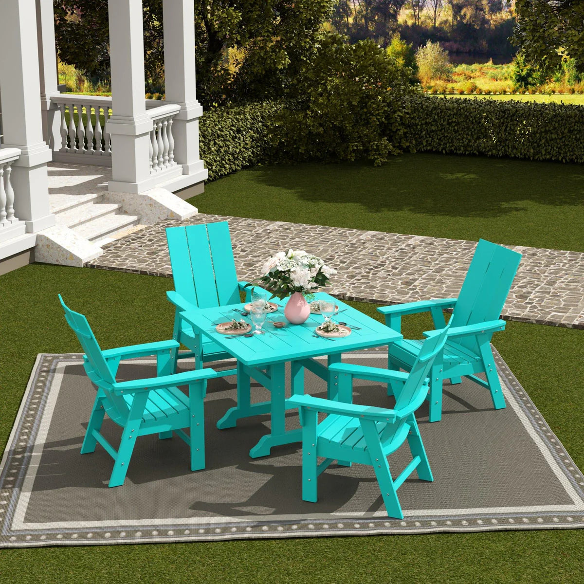 5-Piece Square Dining Table and Modern Adirondack Style Chair Set
