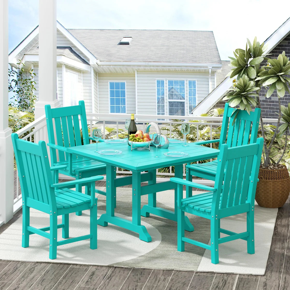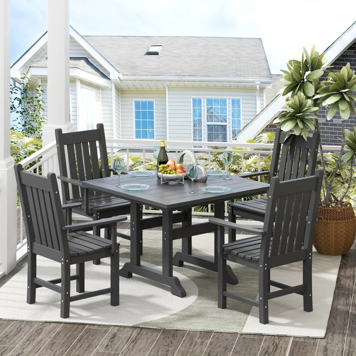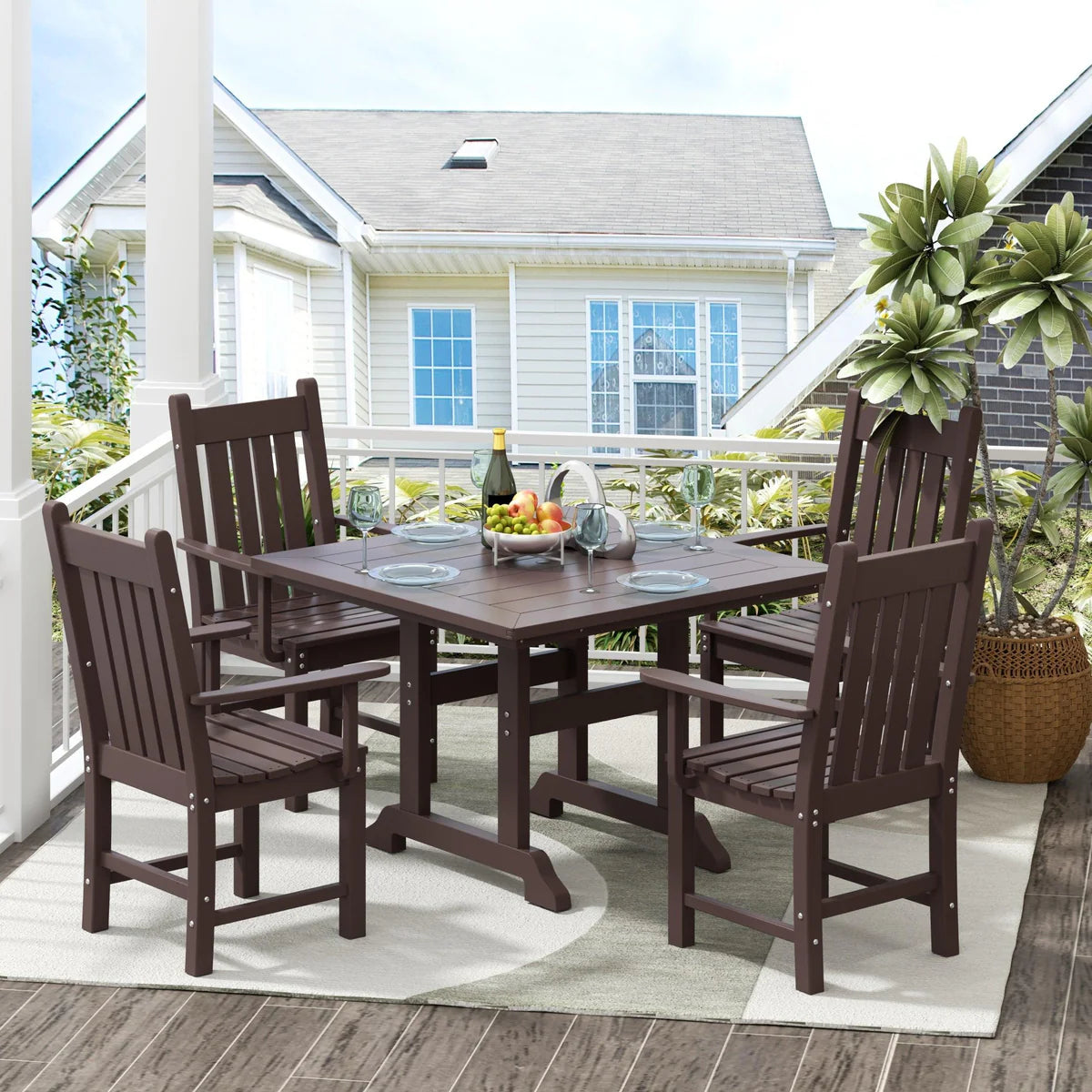 5-Piece Square Dining Table and Classic Arm Chair Set