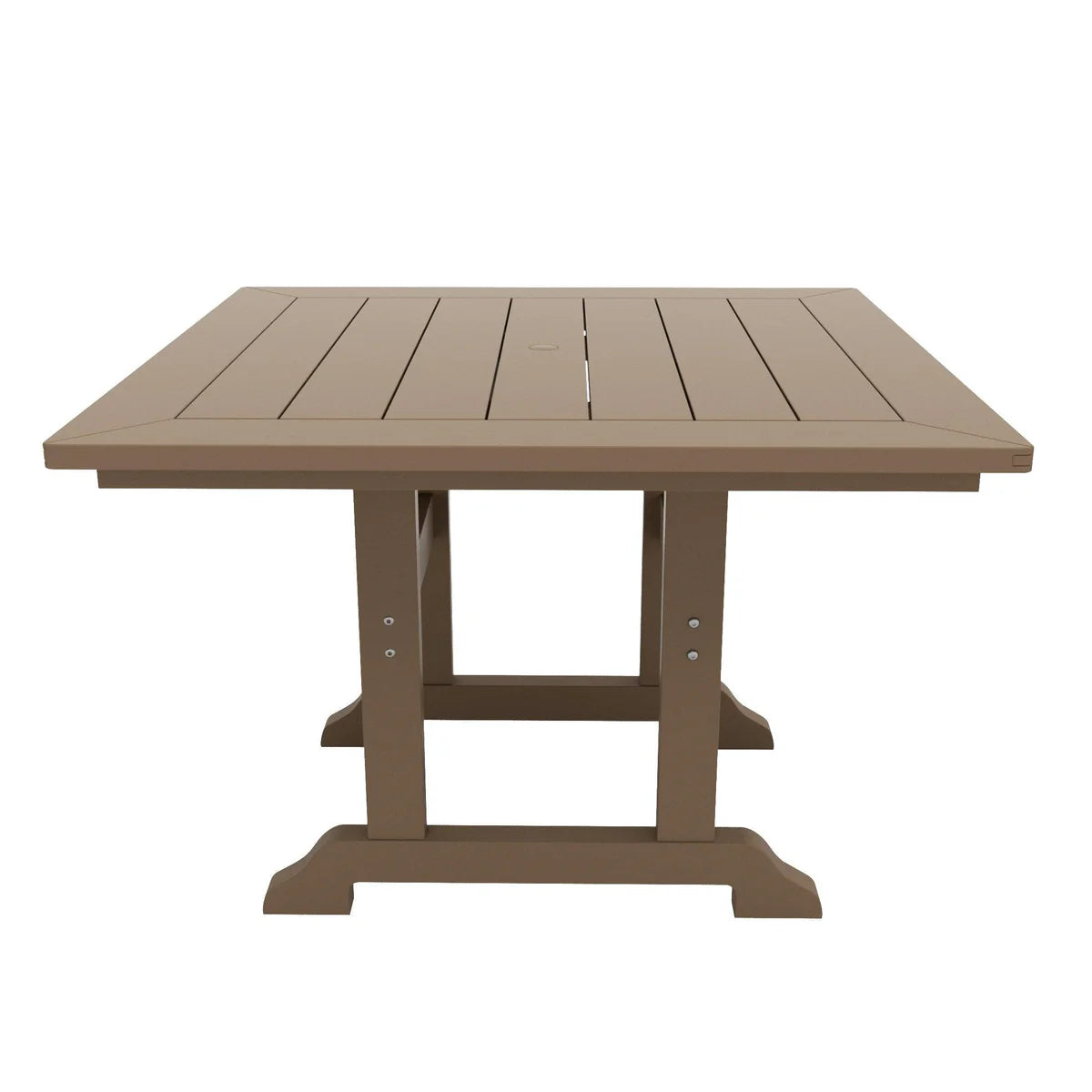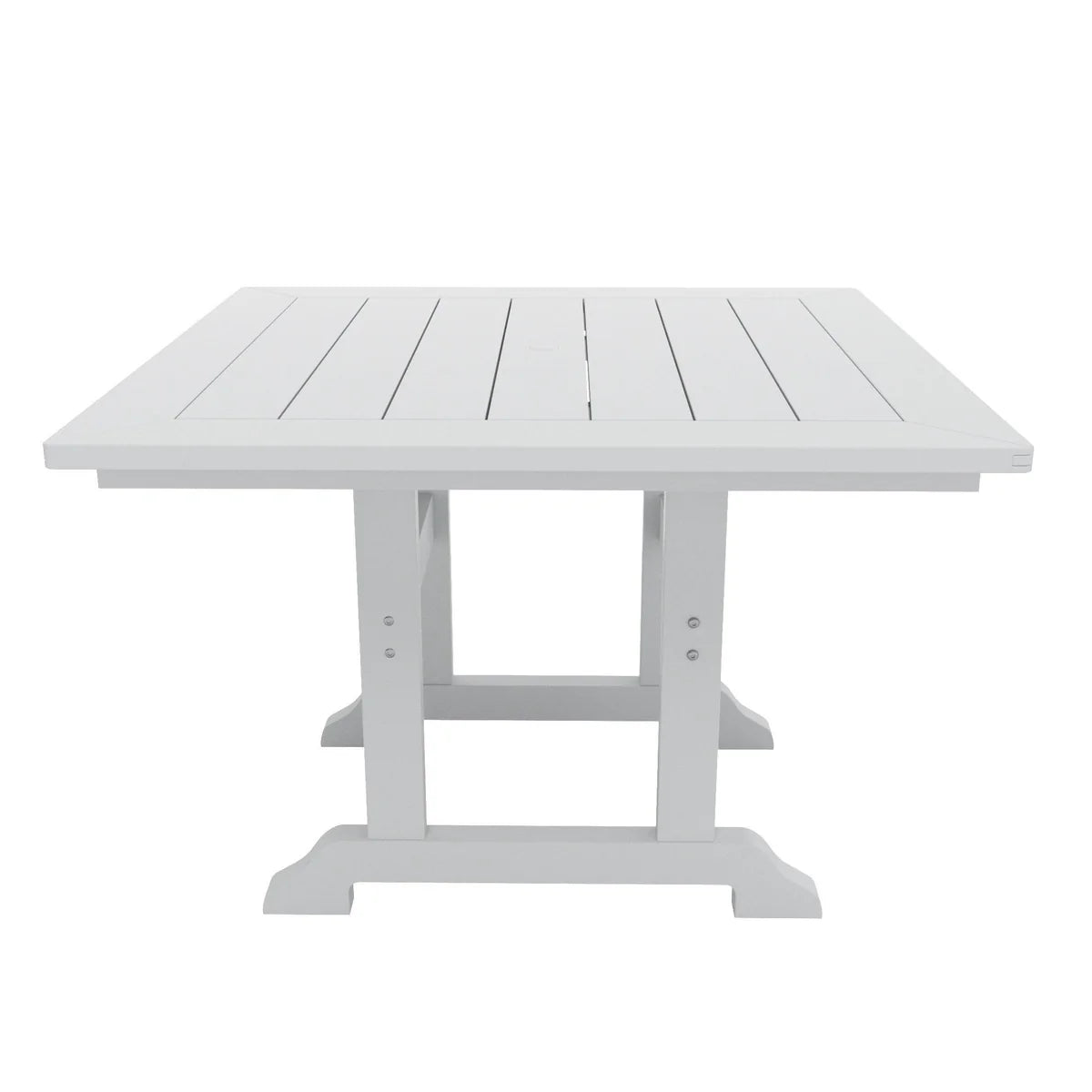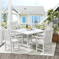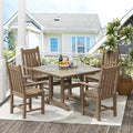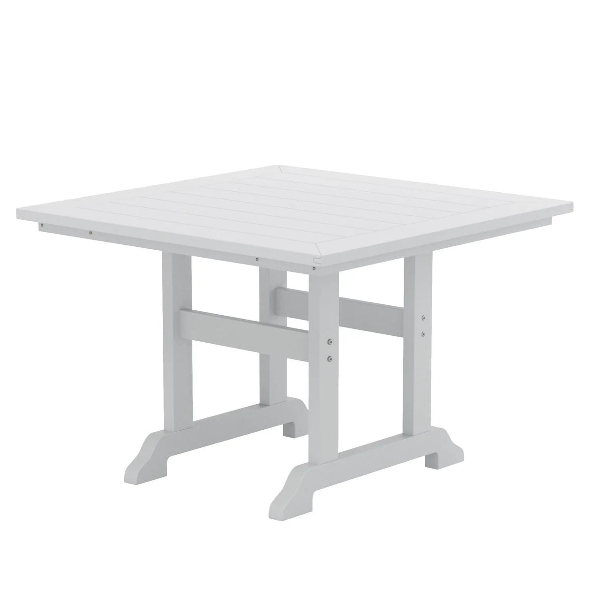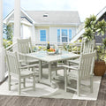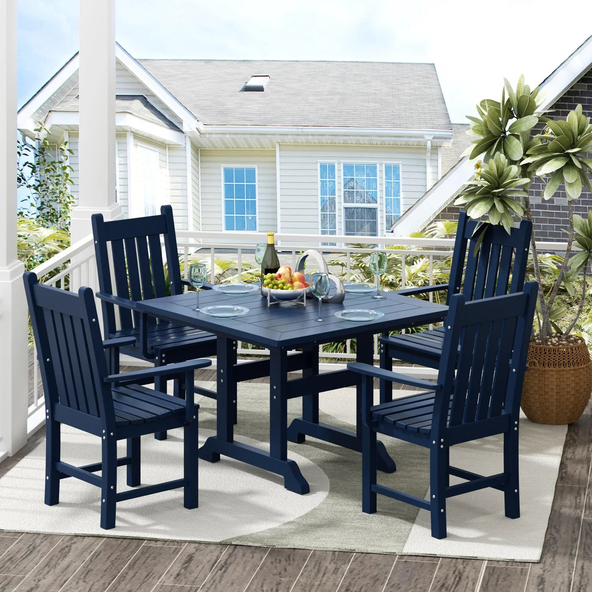 Gather family and friends for a relaxing meal with this beautiful Dining Set. This all-weather dining set seats up to four guests for a laid-back dining experience on the patio, deck or any outdoor space. The study dining table provides a spacious surface while the dining chairs feature gently arched backrests ready for dinner, games, and more. Constructed of durable HDPE poly plastic and rust resistant hardware that will last the test of time.