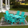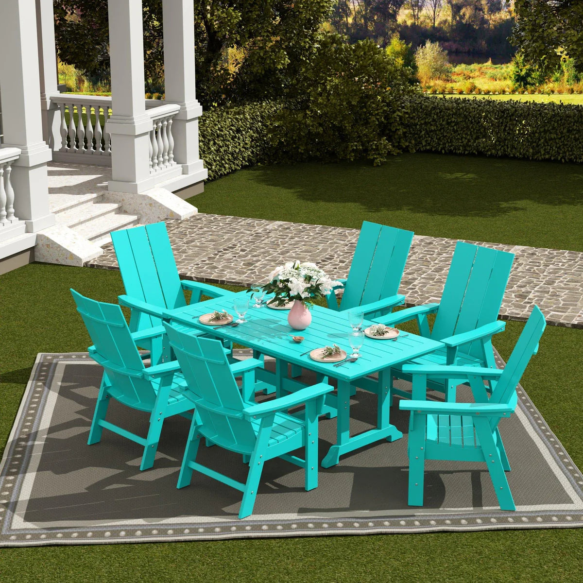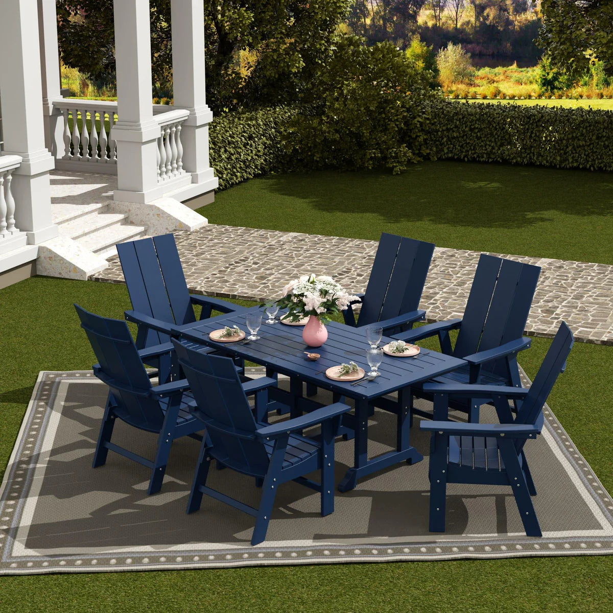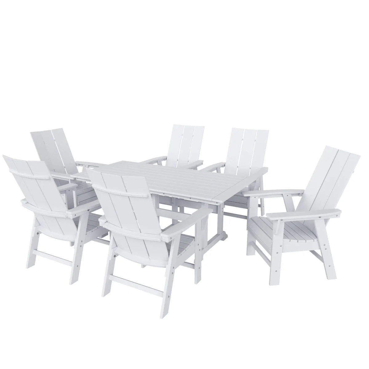 - Set Includes: One (1) Rectangle Dining Table, Six (6) Adirondack Dining Chairs