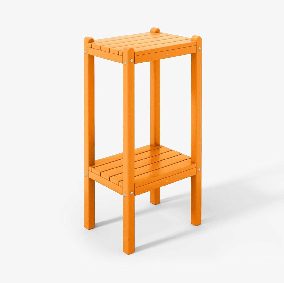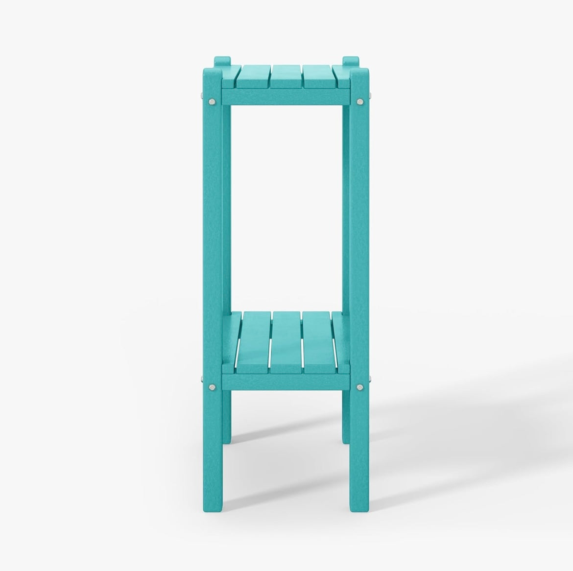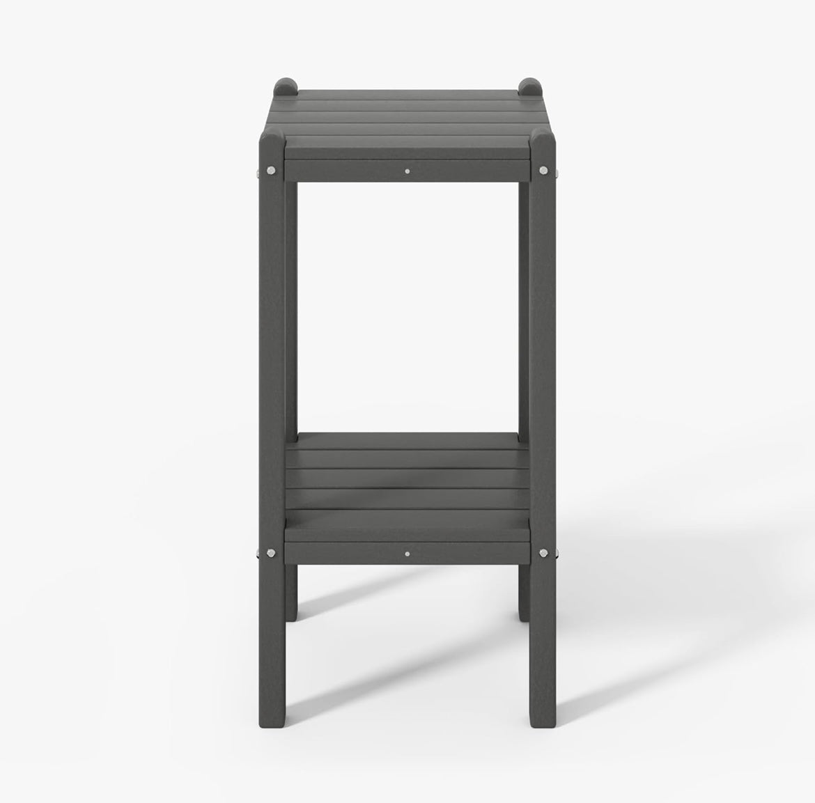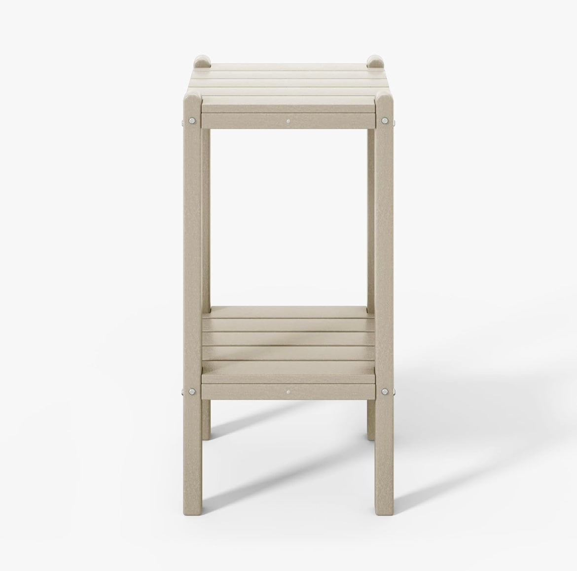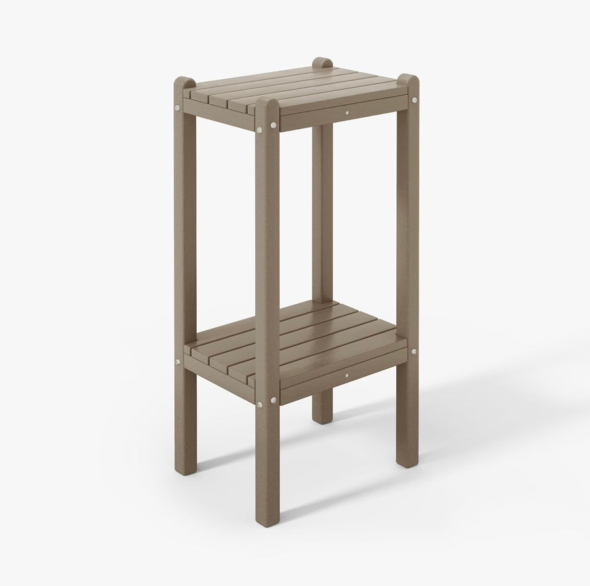 Perfect side table as an outdoor side table by the poolside or as a charming storage space and side table in the bathroom. The unique two-shelf design of the tabletop & shelf can provide you with ample storage space for daily use. What's more, is its compact size, you can place it in any position you like, such as sofa side, bathroom, or narrow corners. Such a simple and elegant end table will be the top choice for your home. Guests who are standing around your outdoor entertainment area will love the convenience of the two-shelf side table.