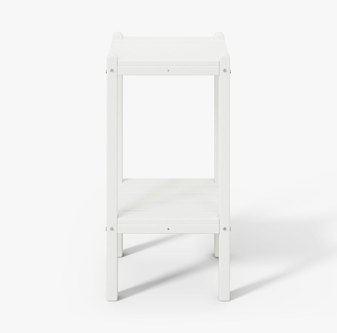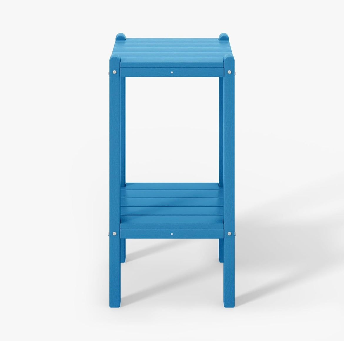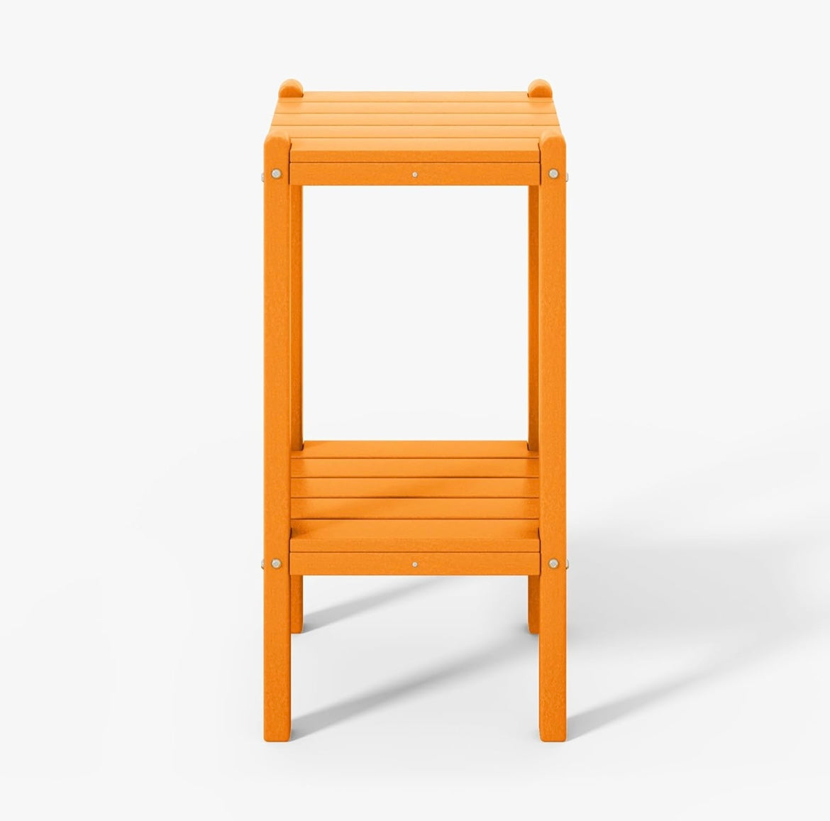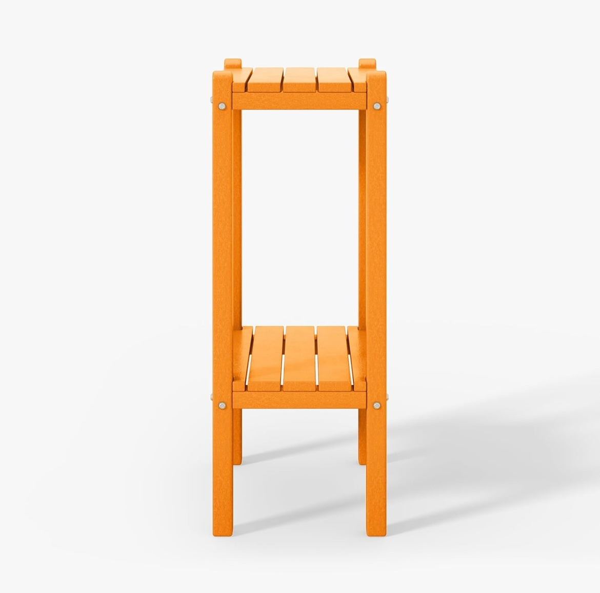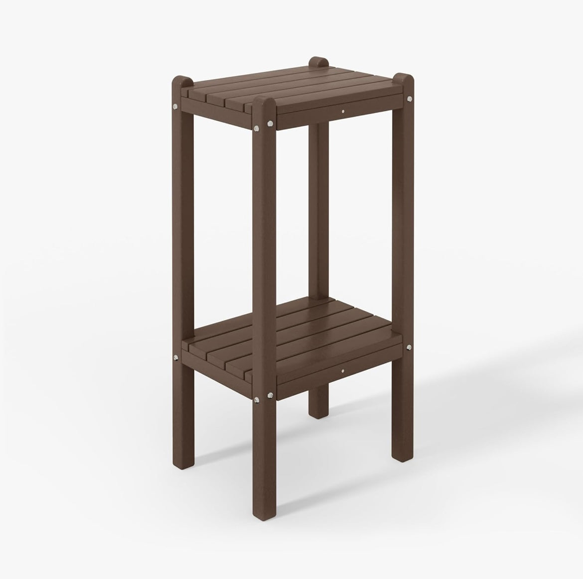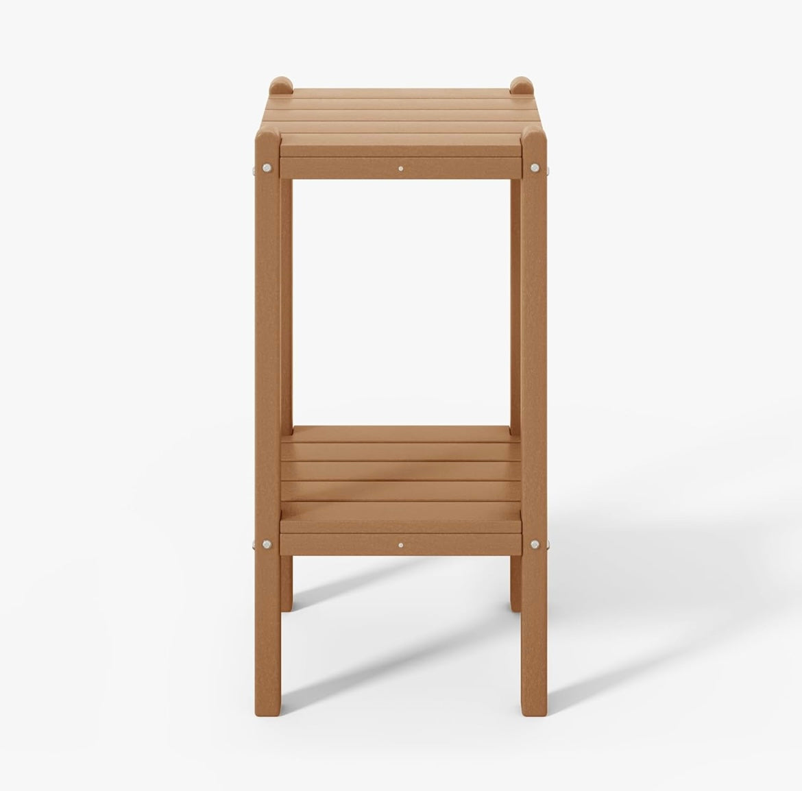 Perfect side table as an outdoor side table by the poolside or as a charming storage space and side table in the bathroom. The unique two-shelf design of the tabletop & shelf can provide you with ample storage space for daily use. What's more, is its compact size, you can place it in any position you like, such as sofa side, bathroom, or narrow corners. Such a simple and elegant end table will be the top choice for your home. Guests who are standing around your outdoor entertainment area will love the convenience of the two-shelf side table.