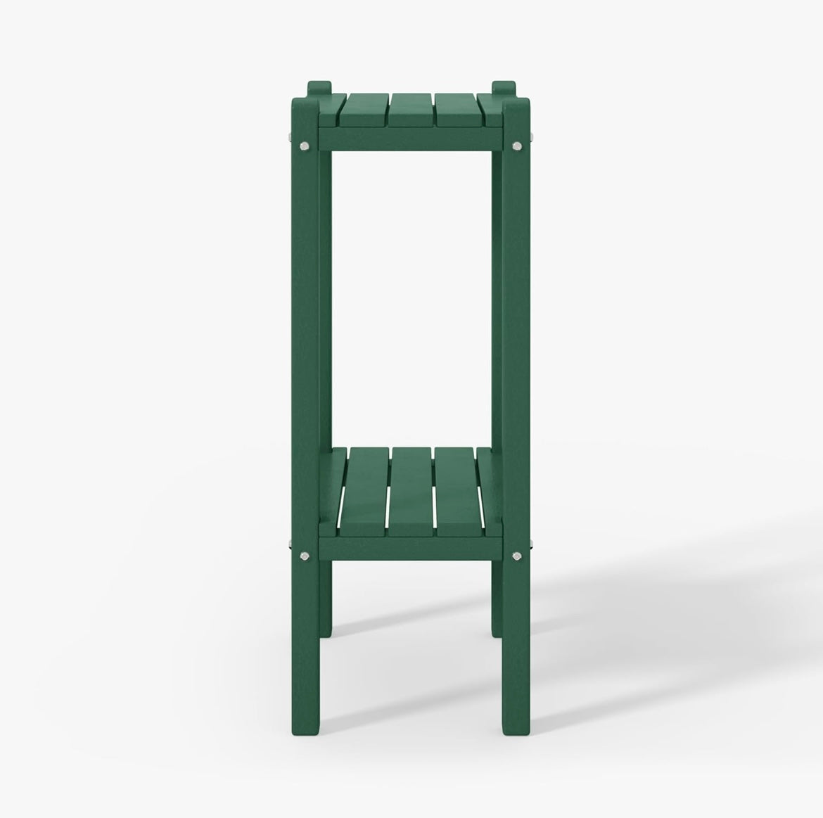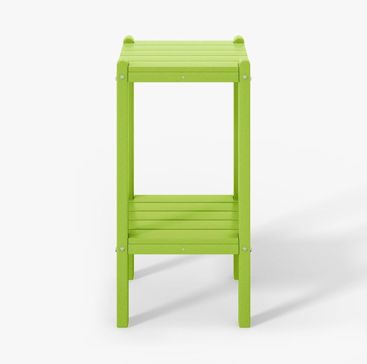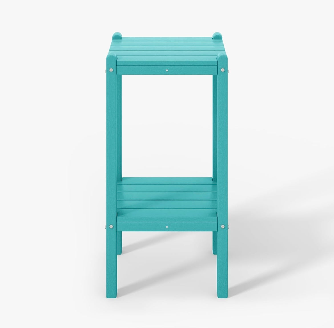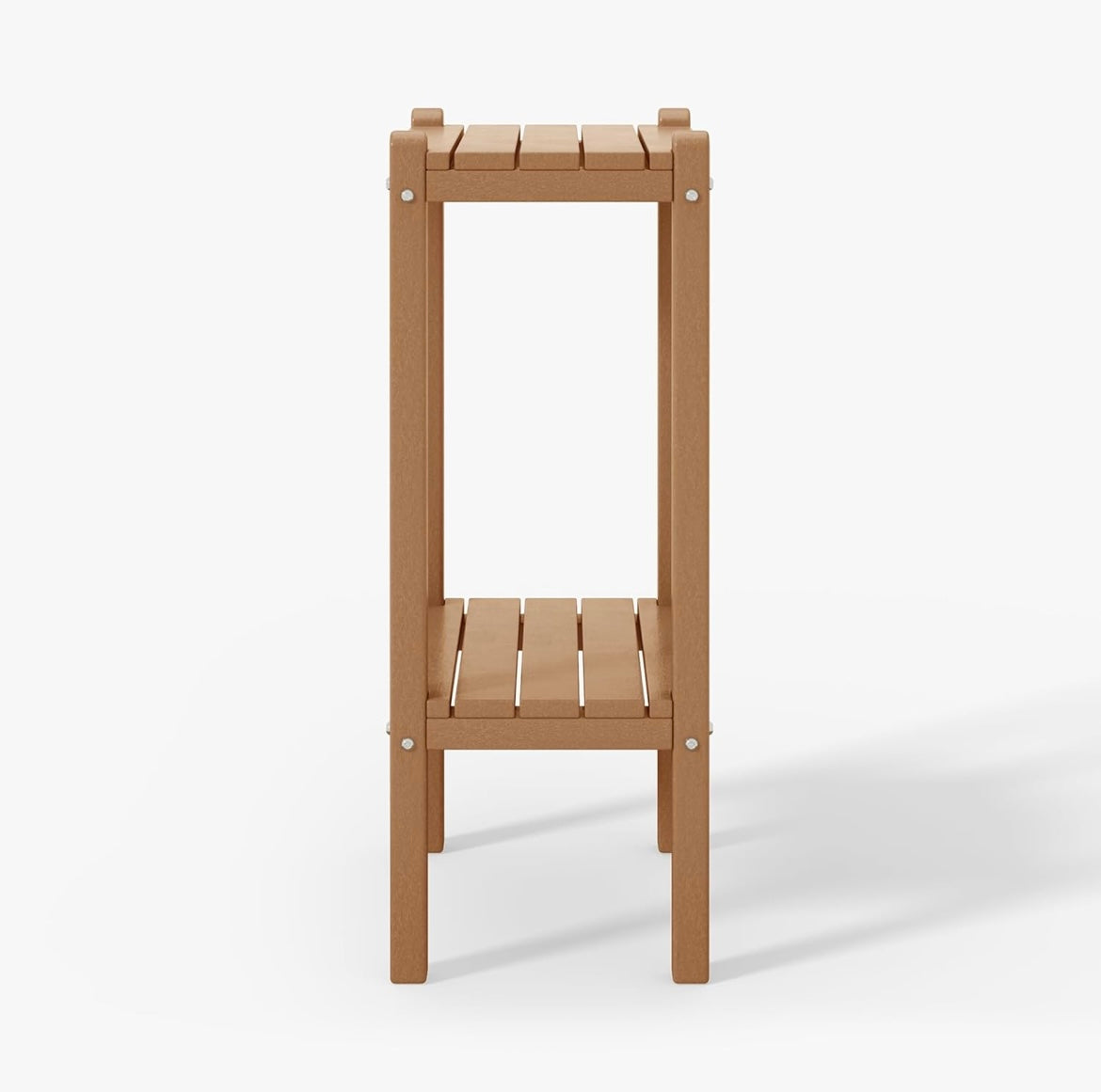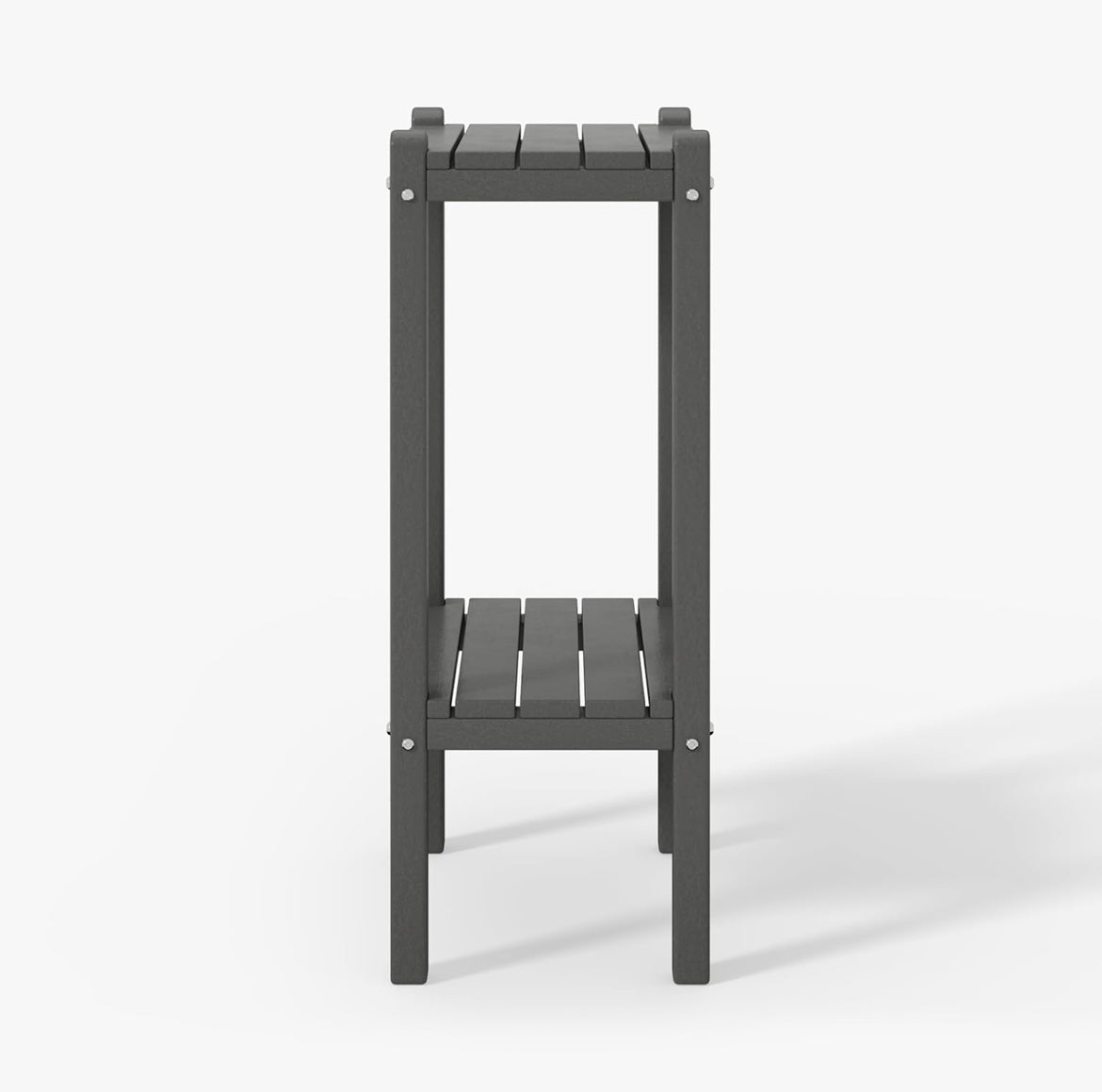 Perfect side table as an outdoor side table by the poolside or as a charming storage space and side table in the bathroom. The unique two-shelf design of the tabletop & shelf can provide you with ample storage space for daily use. What's more, is its compact size, you can place it in any position you like, such as sofa side, bathroom, or narrow corners. Such a simple and elegant end table will be the top choice for your home. Guests who are standing around your outdoor entertainment area will love the convenience of the two-shelf side table.