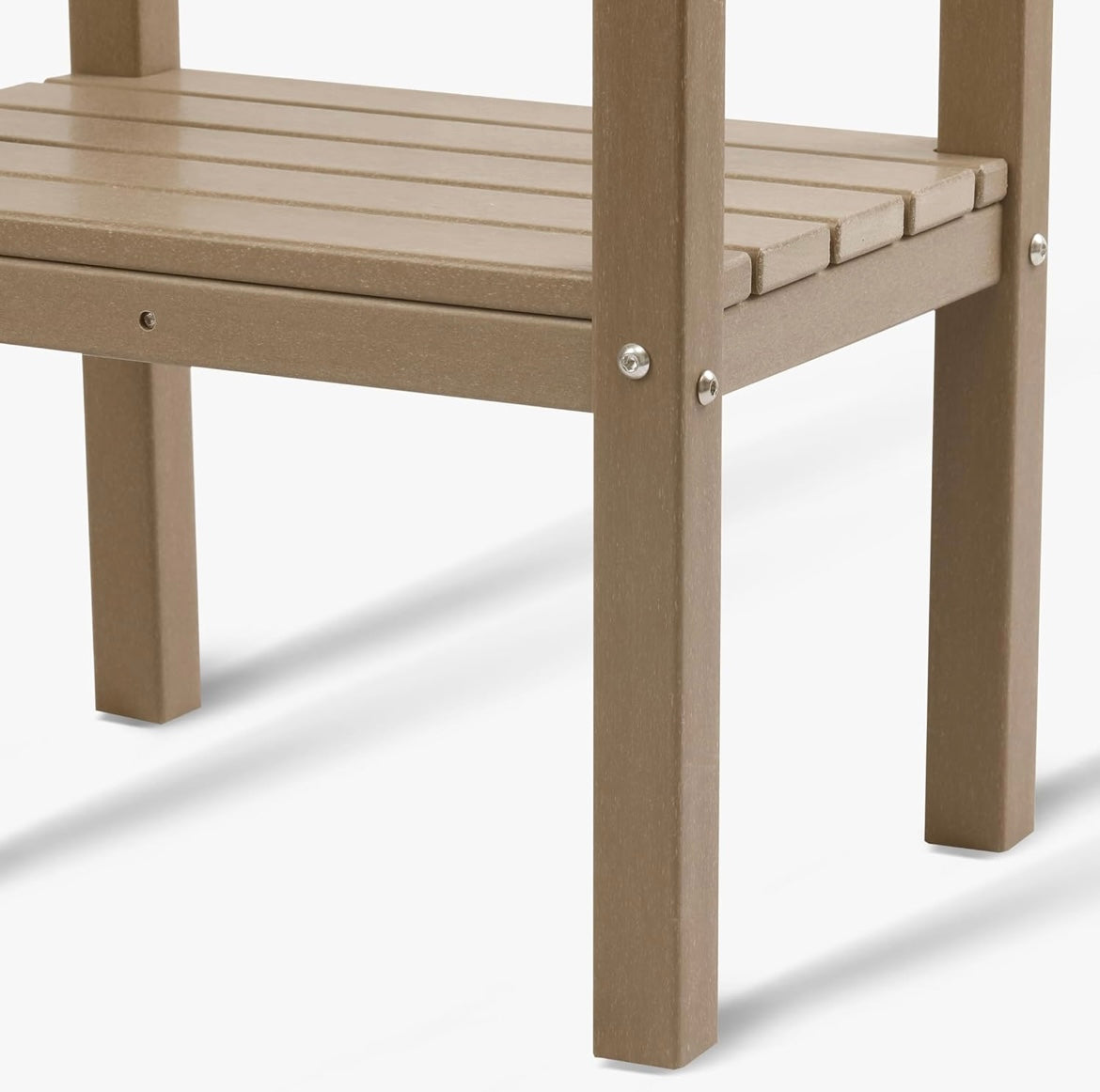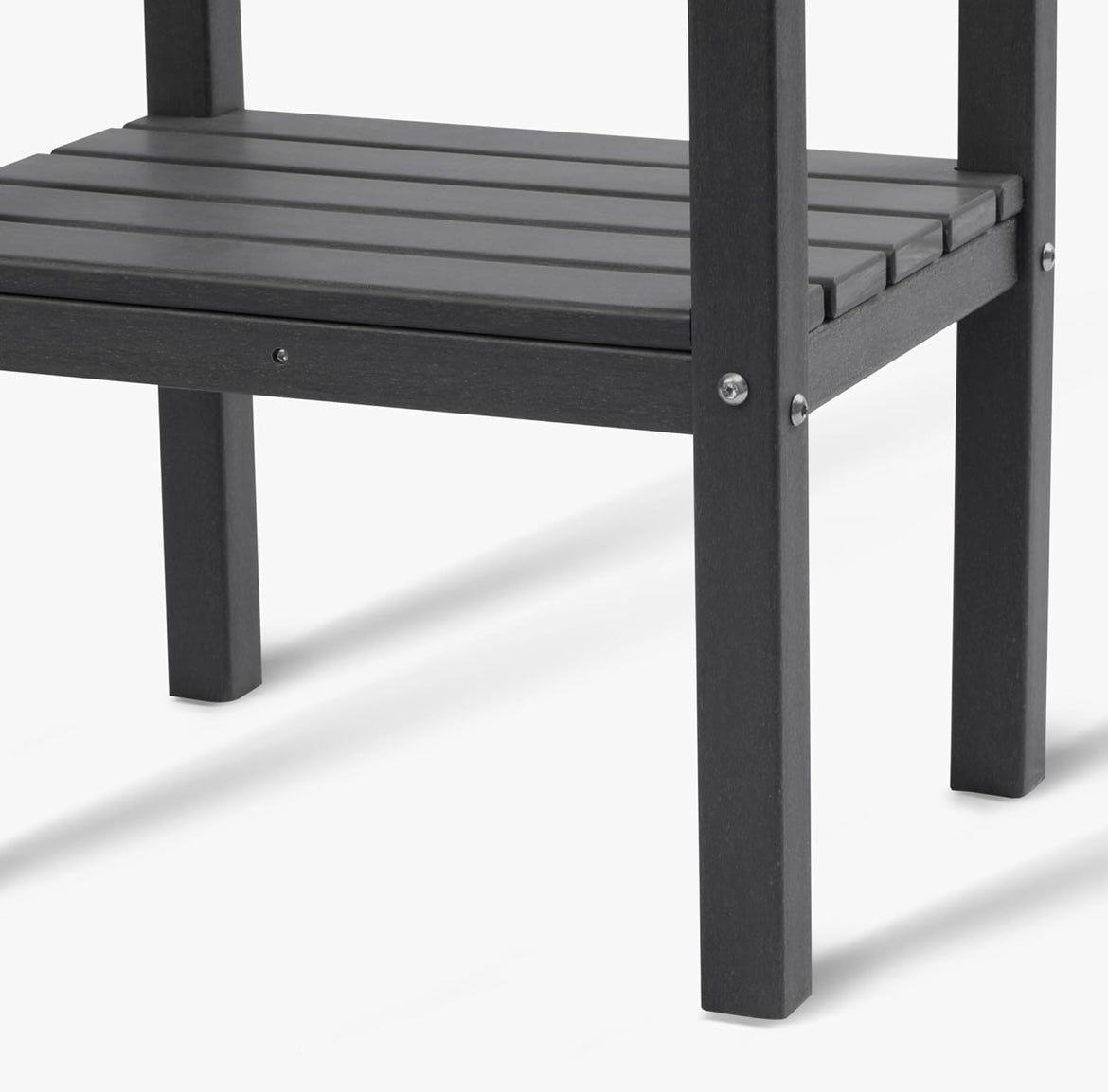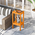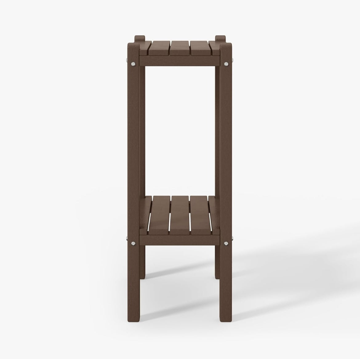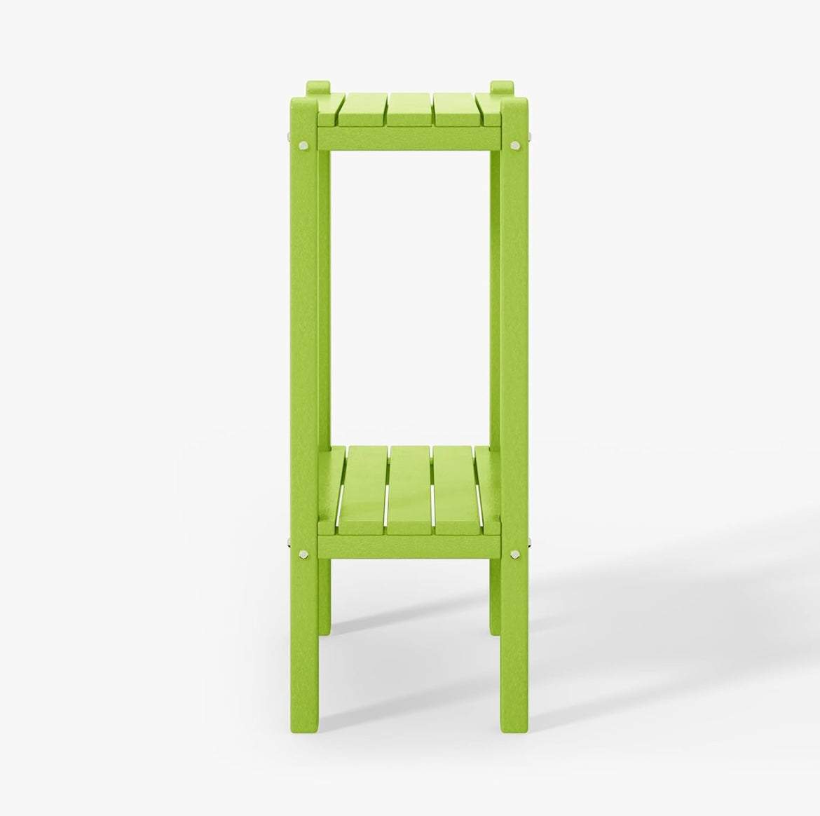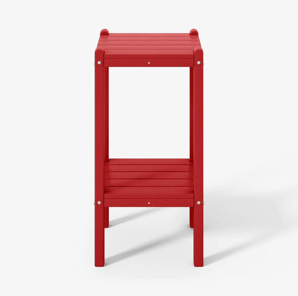 Perfect side table as an outdoor side table by the poolside or as a charming storage space and side table in the bathroom. The unique two-shelf design of the tabletop & shelf can provide you with ample storage space for daily use. What's more, is its compact size, you can place it in any position you like, such as sofa side, bathroom, or narrow corners. Such a simple and elegant end table will be the top choice for your home. Guests who are standing around your outdoor entertainment area will love the convenience of the two-shelf side table.