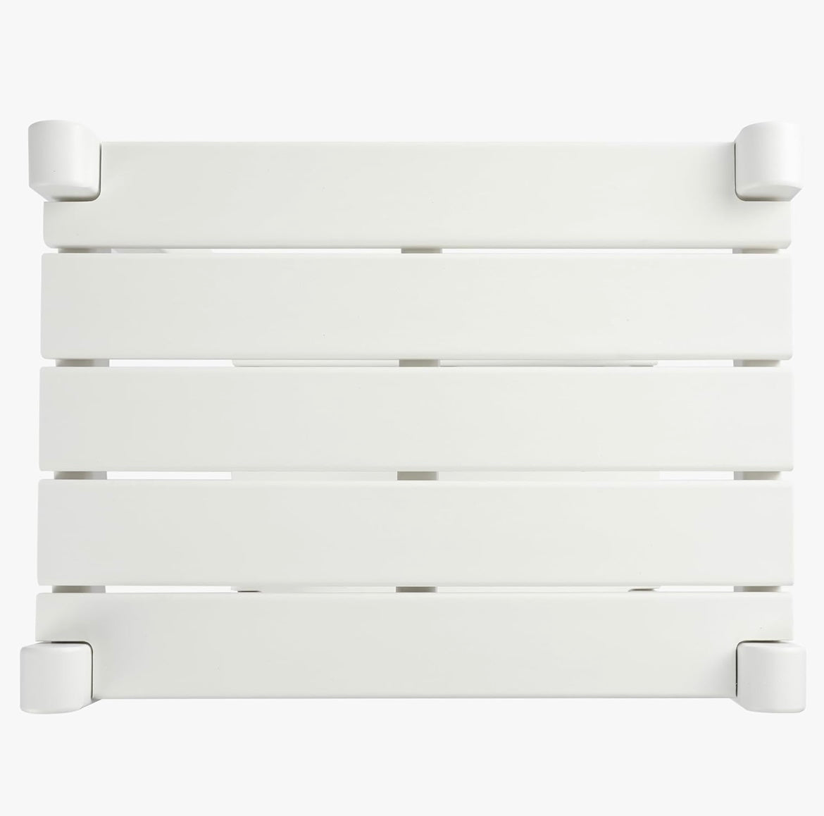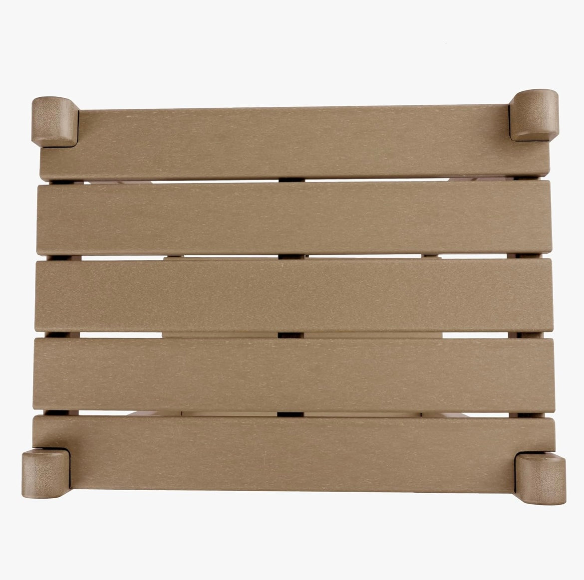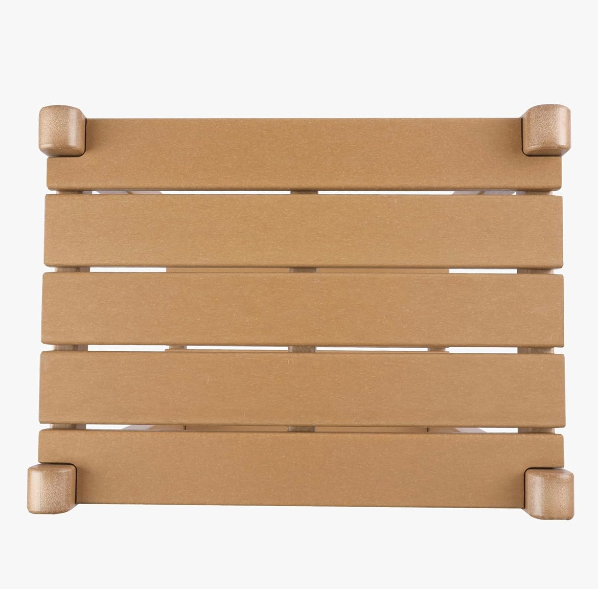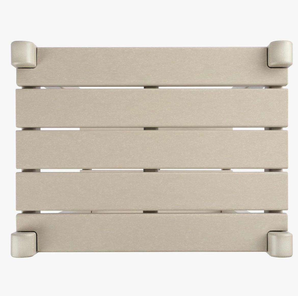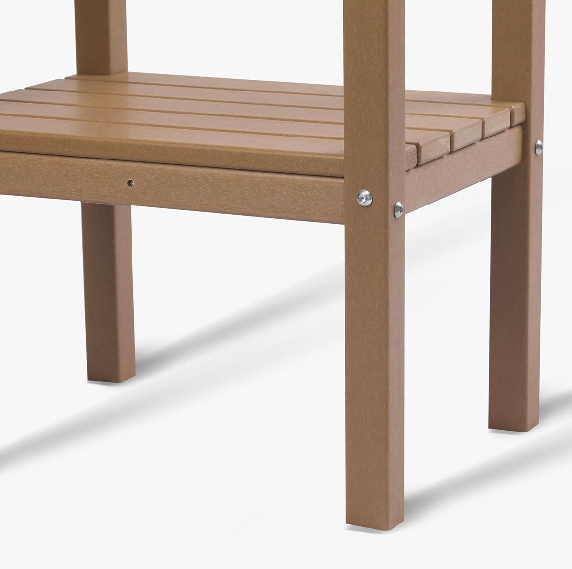 Perfect side table as an outdoor side table by the poolside or as a charming storage space and side table in the bathroom. The unique two-shelf design of the tabletop & shelf can provide you with ample storage space for daily use. What's more, is its compact size, you can place it in any position you like, such as sofa side, bathroom, or narrow corners. Such a simple and elegant end table will be the top choice for your home. Guests who are standing around your outdoor entertainment area will love the convenience of the two-shelf side table.
