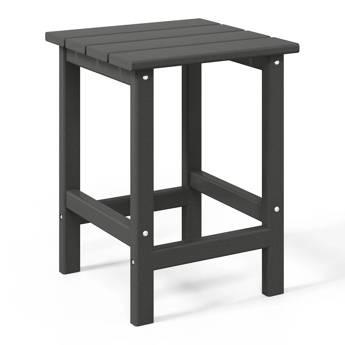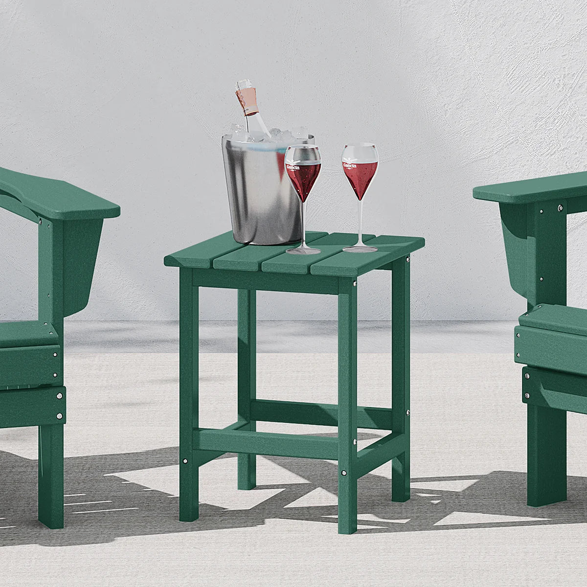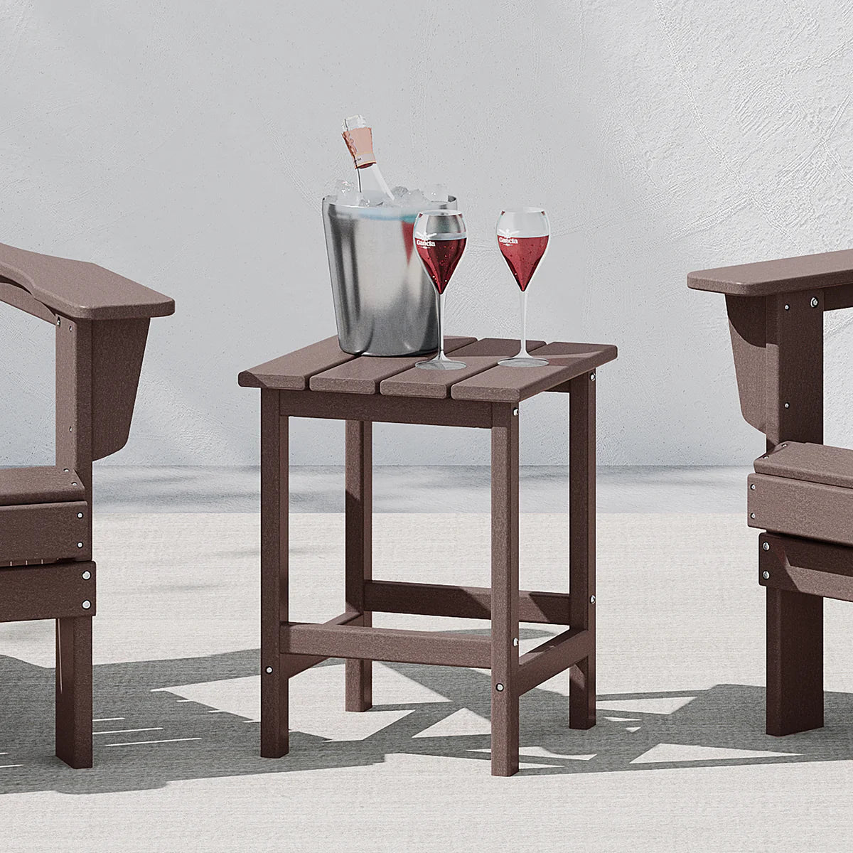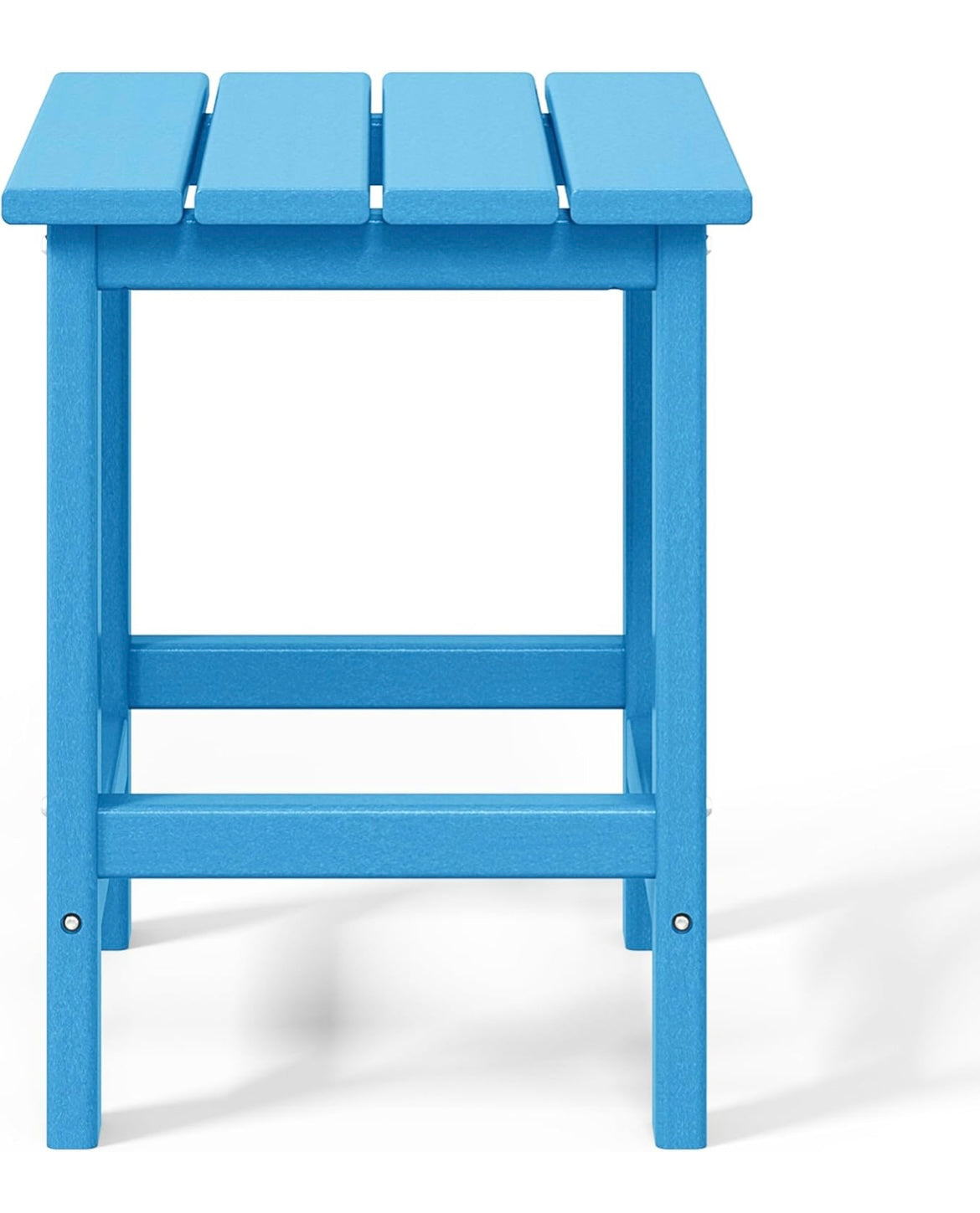 A classic Adirondack slatted style outdoor side table for Adirondack Chairs. Matches perfect with Adirondack Lawn chairs, patio furniture, or resin Adirondack chairs. Can be used outdoors and indoors because of its functionality. Ideal option for outdoor tables, end tables. Available in multiple colors stay and fade resistant color options. Use with other patio chairs to help keep your book, drinks next to any seating area.