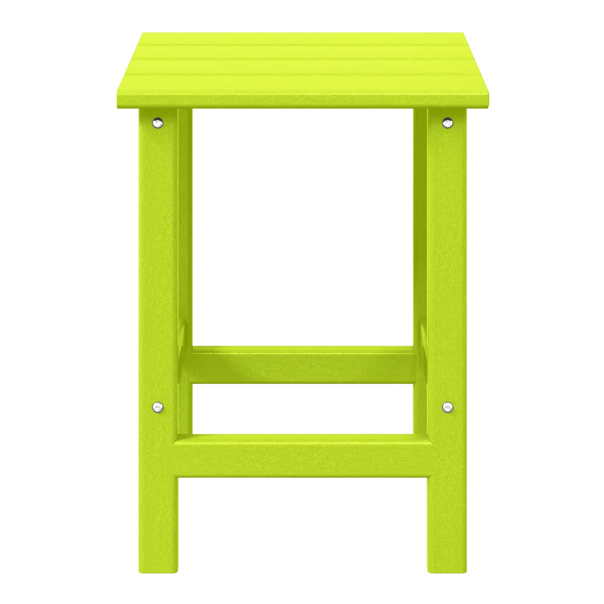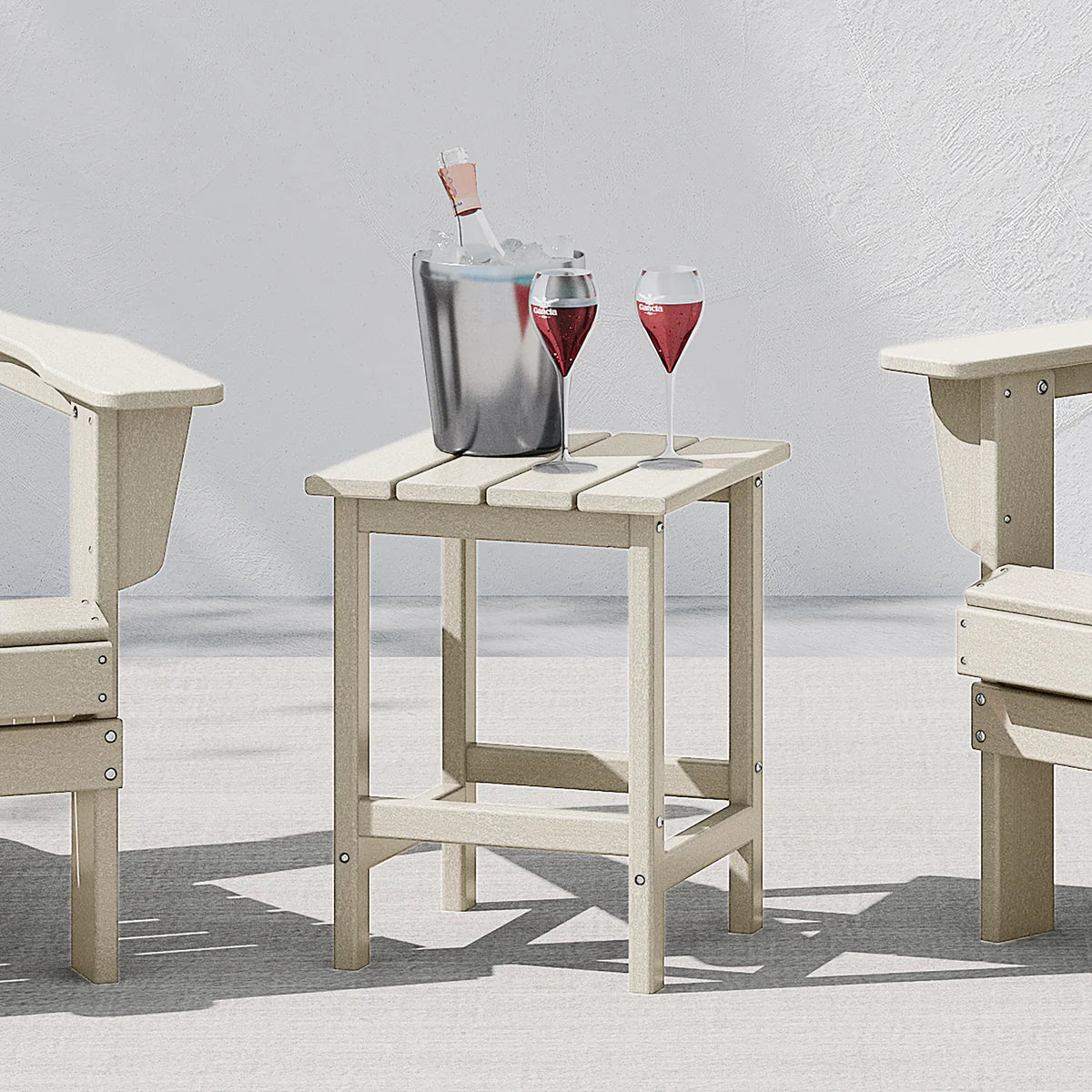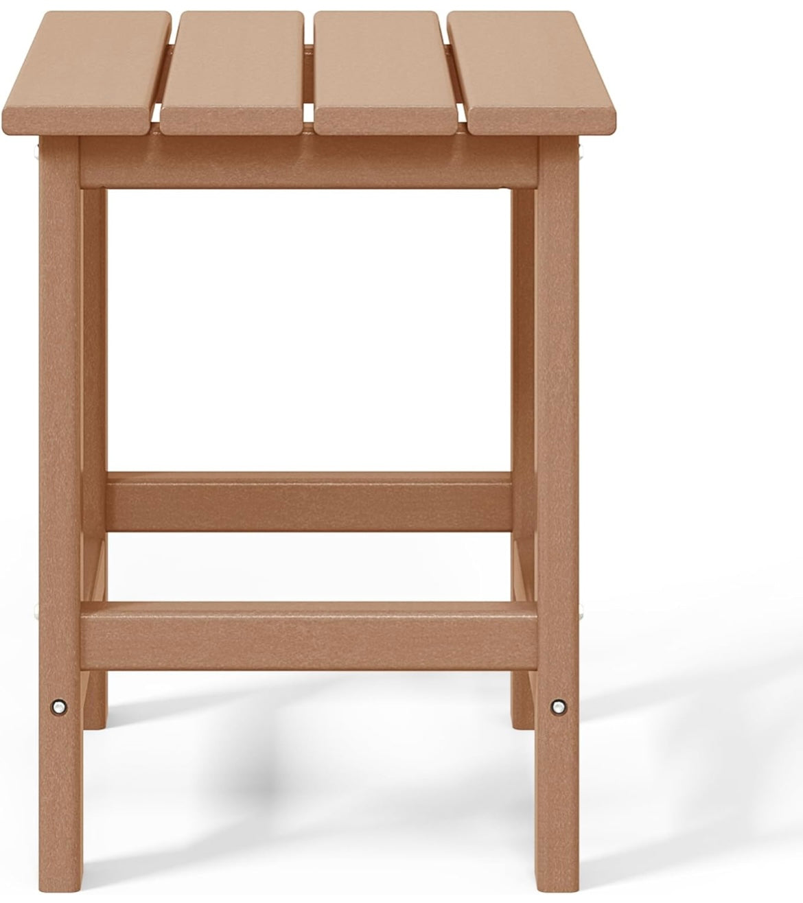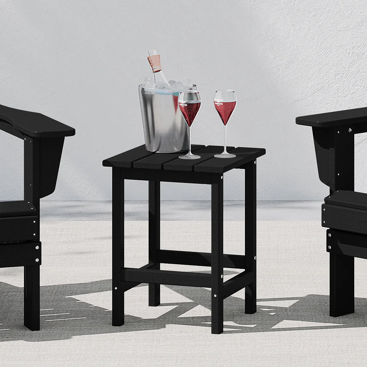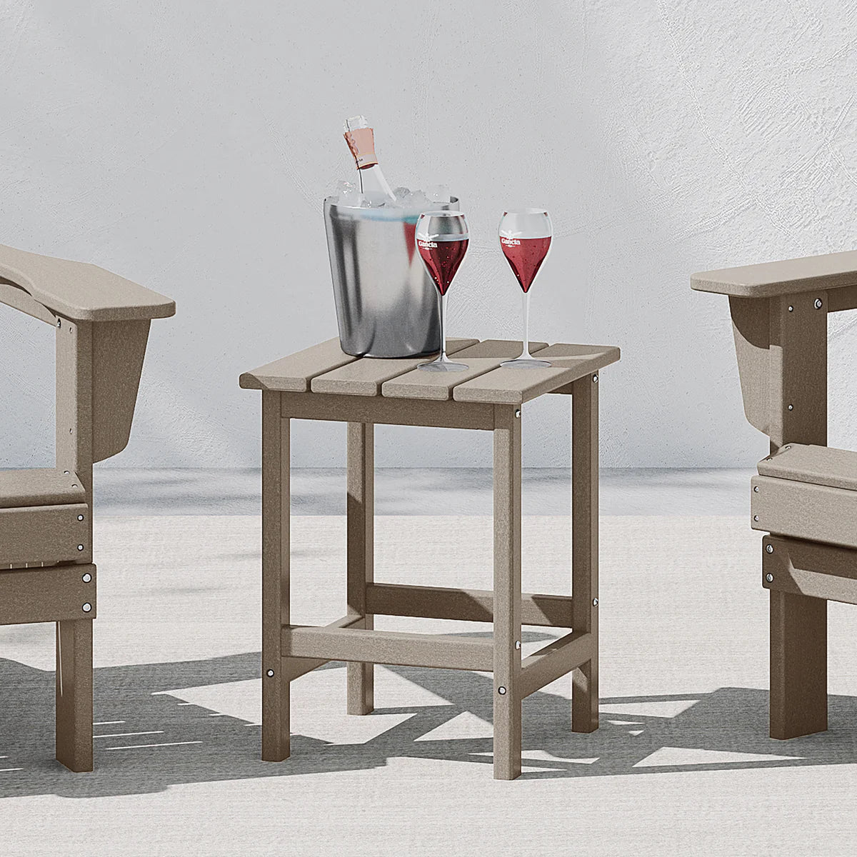 A classic Adirondack slatted style outdoor side table for Adirondack Chairs. Matches perfect with Adirondack Lawn chairs, patio furniture, or resin Adirondack chairs. Can be used outdoors and indoors because of its functionality. Ideal option for outdoor tables, end tables. Available in multiple colors stay and fade resistant color options. Use with other patio chairs to help keep your book, drinks next to any seating area.