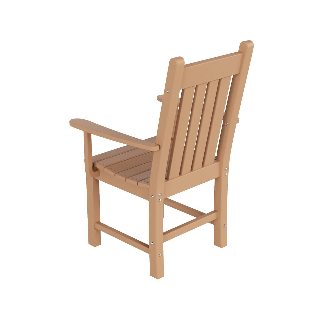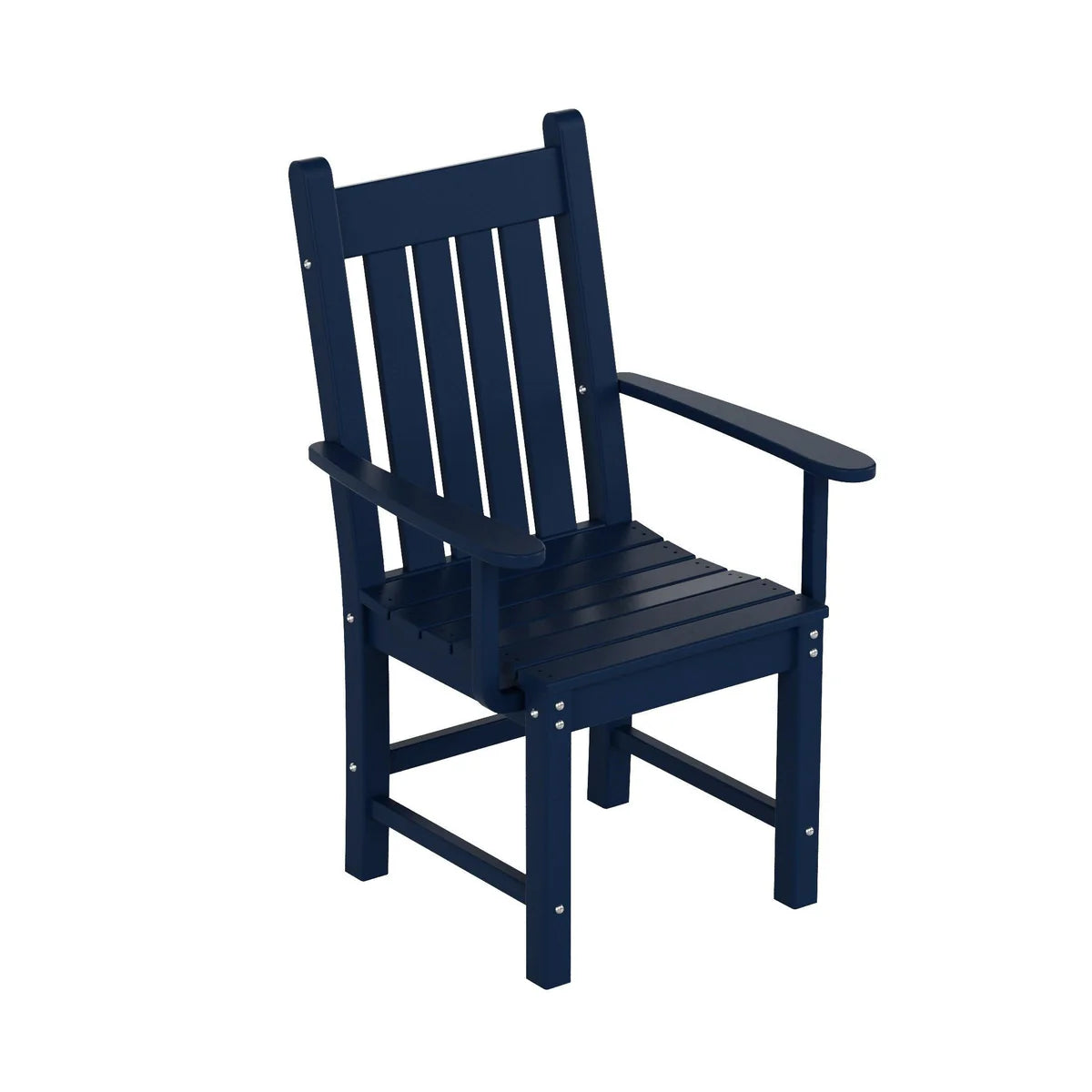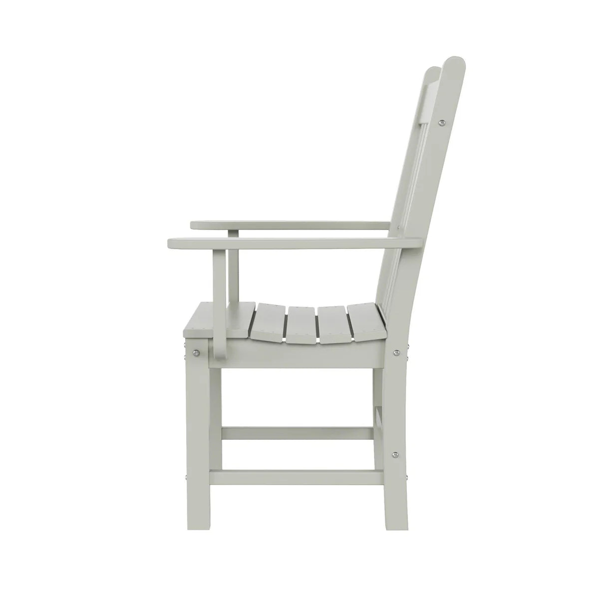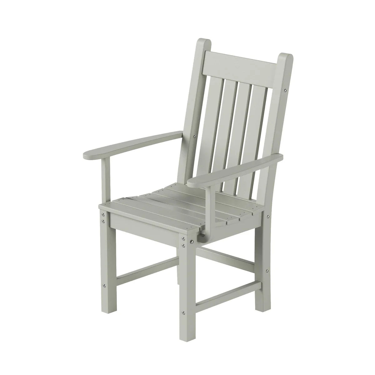 Sit back and relax while dining outside on the patio in the dining armchair. This armchair features subtle curves and a comfortably arched back that shows off a classic look. You'll find comfort in this all-weather chair and appreciate its versatility when you find that it fits in a variety of settings from a quiet outdoor garden to your back deck right by the pool.