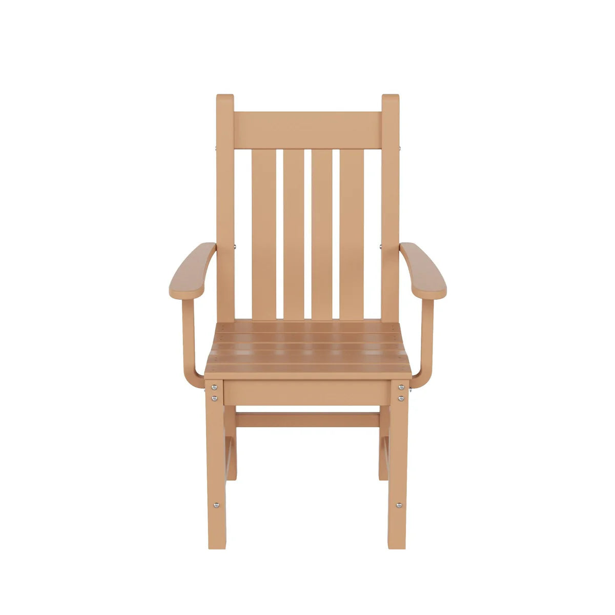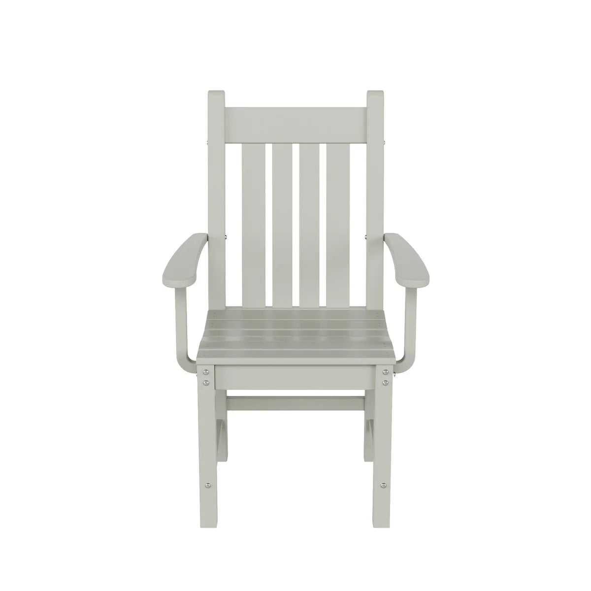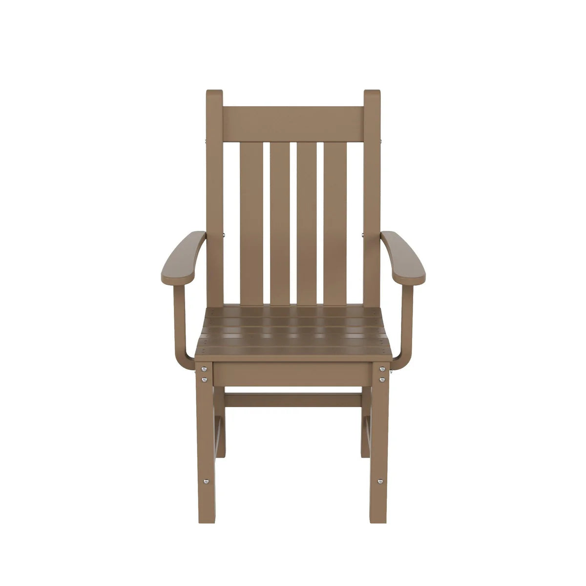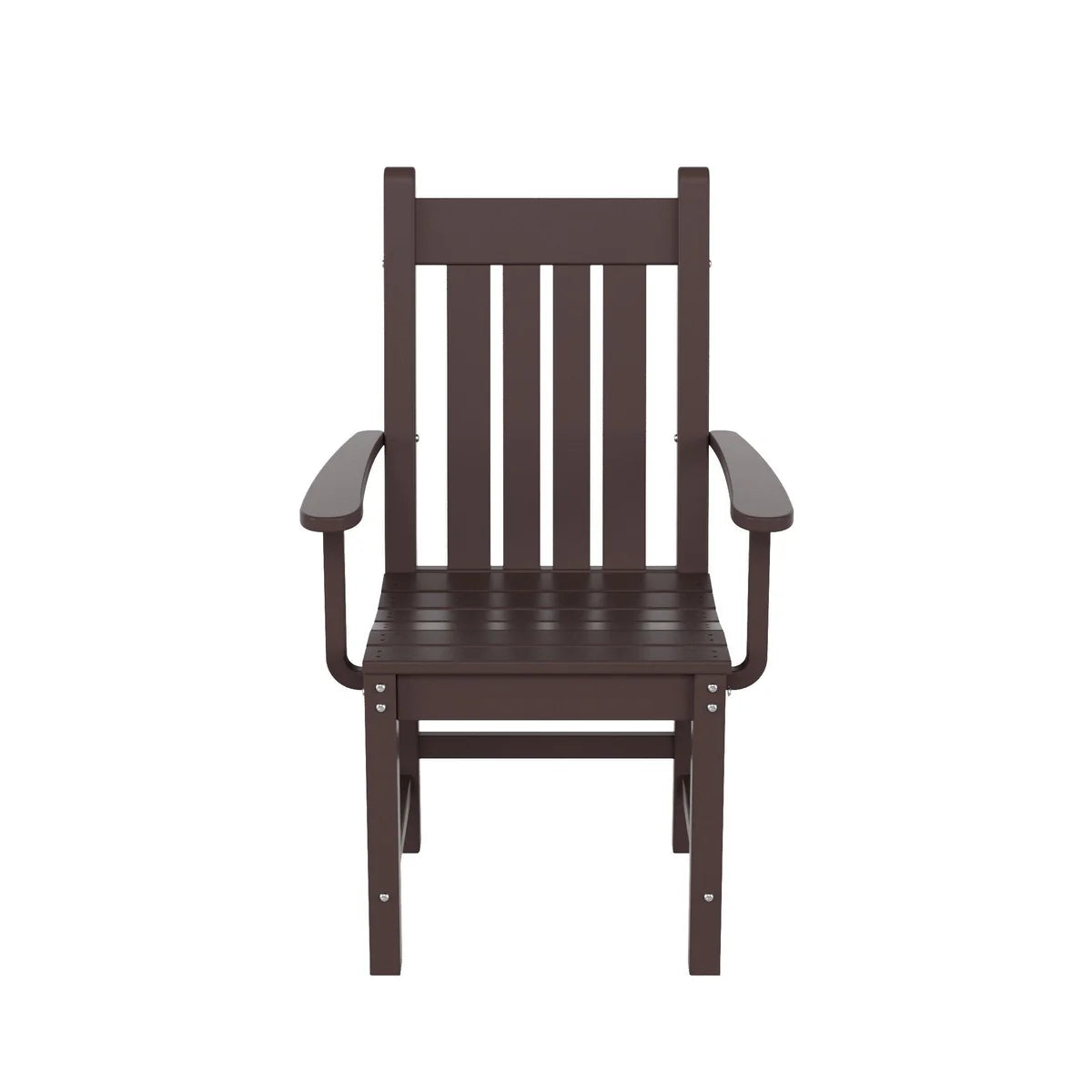 Sit back and relax while dining outside on the patio in the dining armchair. This armchair features subtle curves and a comfortably arched back that shows off a classic look. You'll find comfort in this all-weather chair and appreciate its versatility when you find that it fits in a variety of settings from a quiet outdoor garden to your back deck right by the pool.