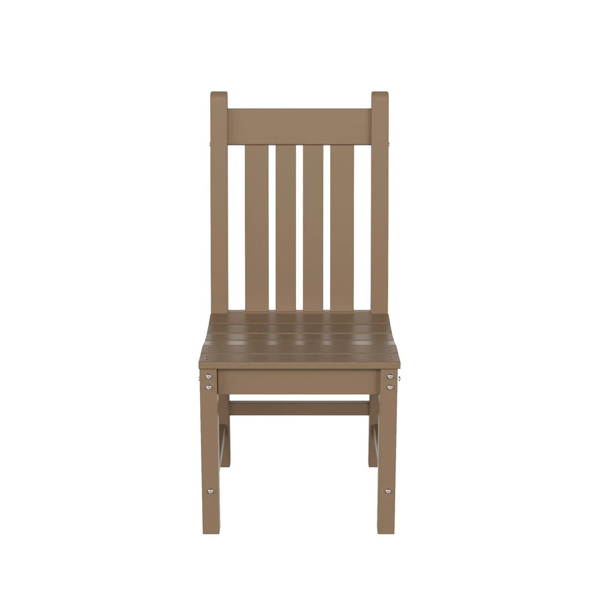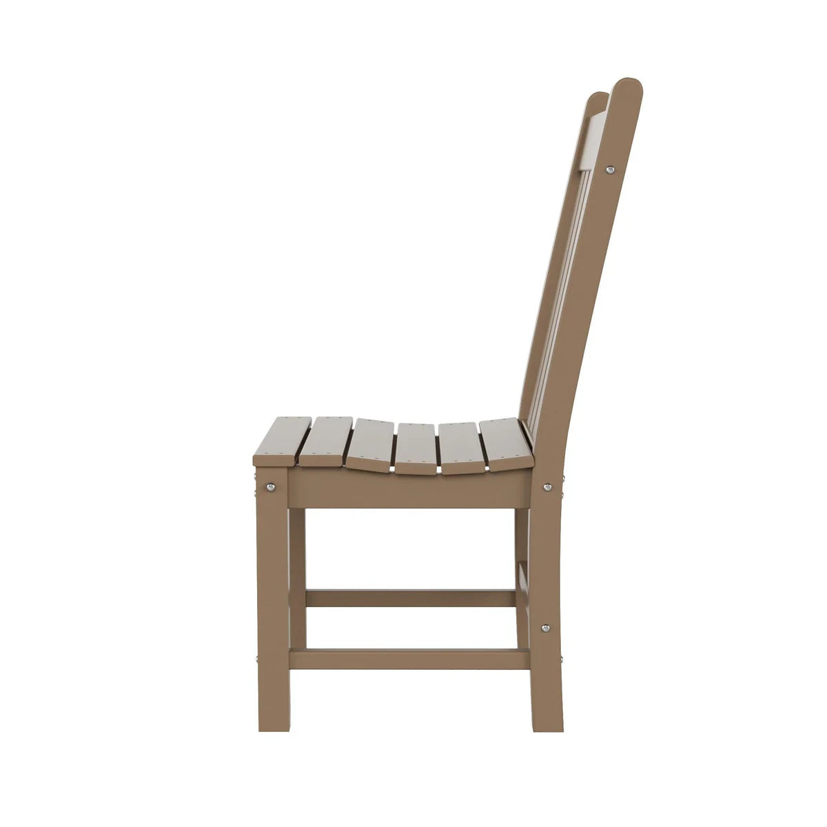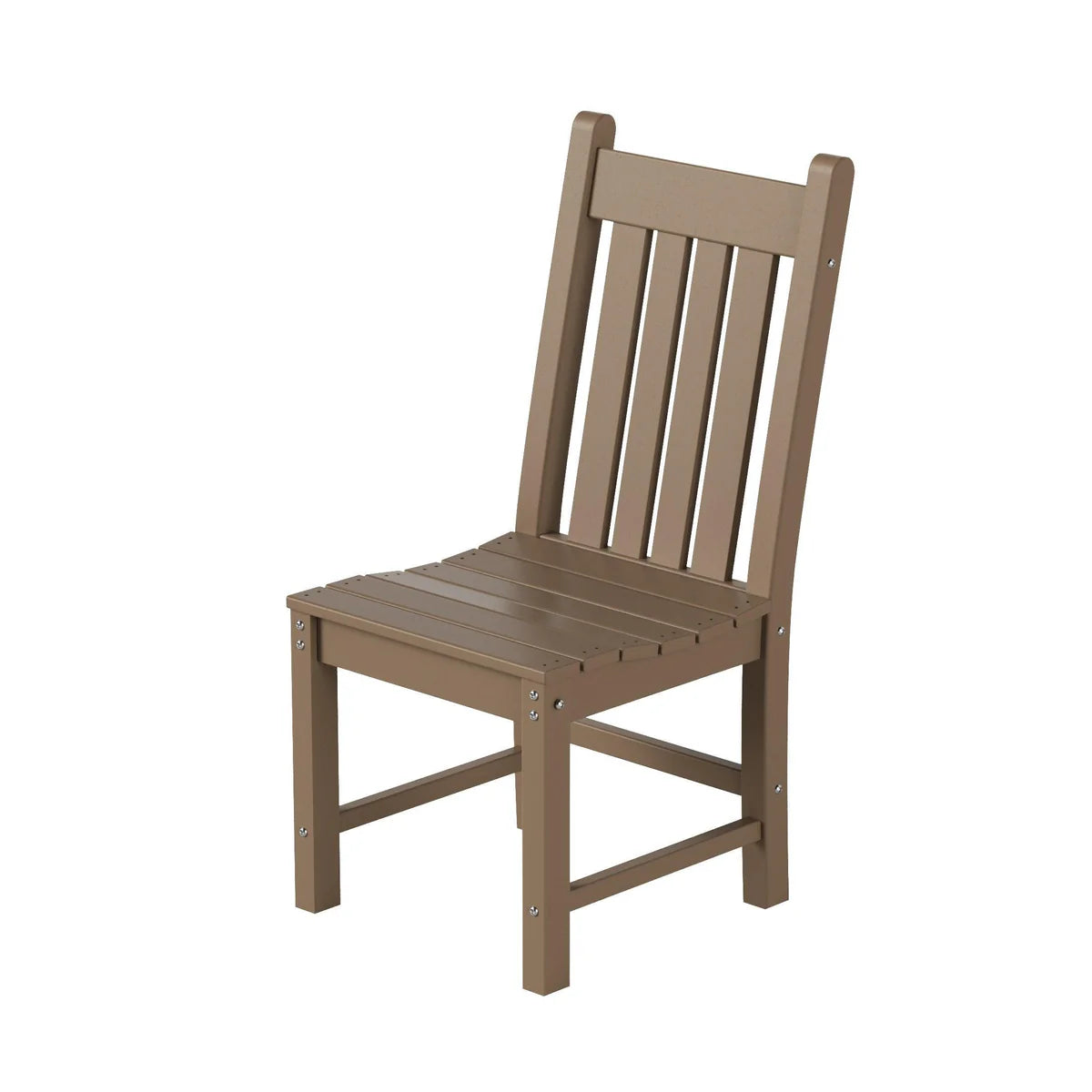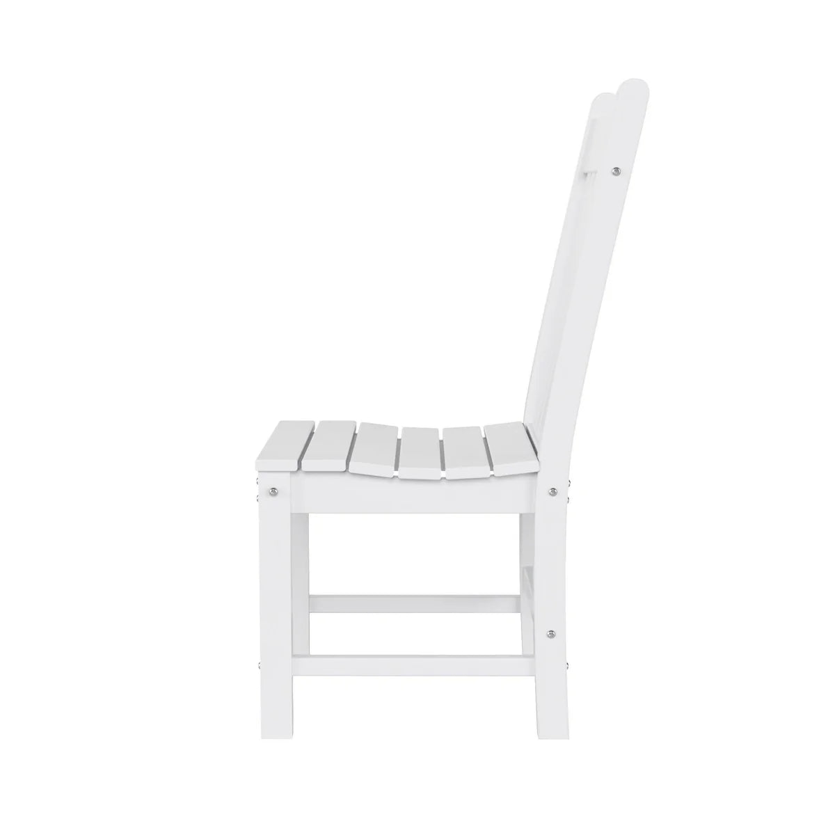 Sit back and relax while dining outside on the patio in this dining chair. This chair features subtle curves and a comfortably arched back that shows off a classic look. You'll find comfort in this all-weather chair and appreciate its versatility when you find that it fits in a variety of settings from a quiet outdoor garden to your back deck right by the pool.