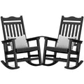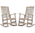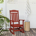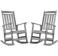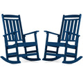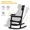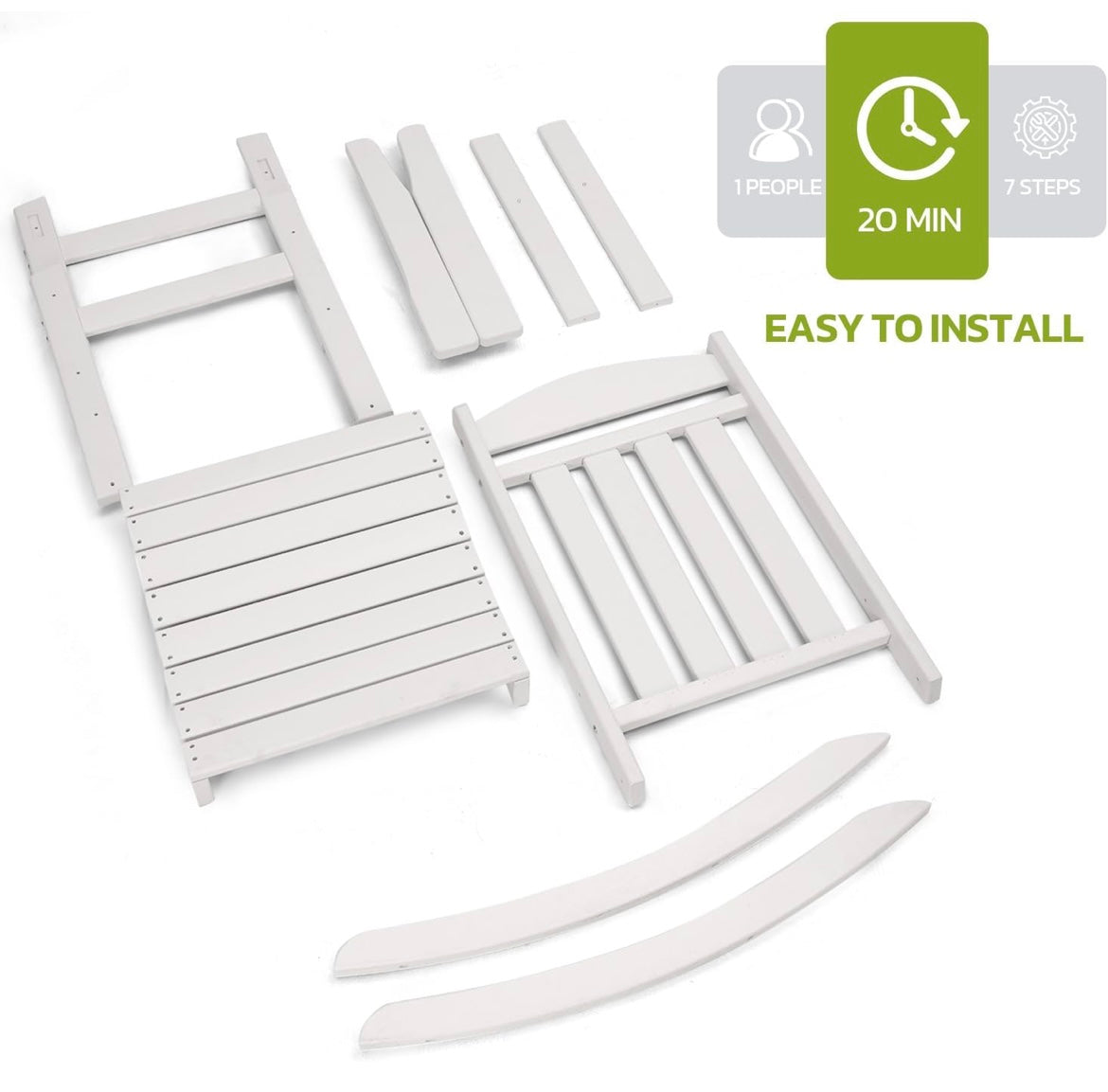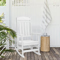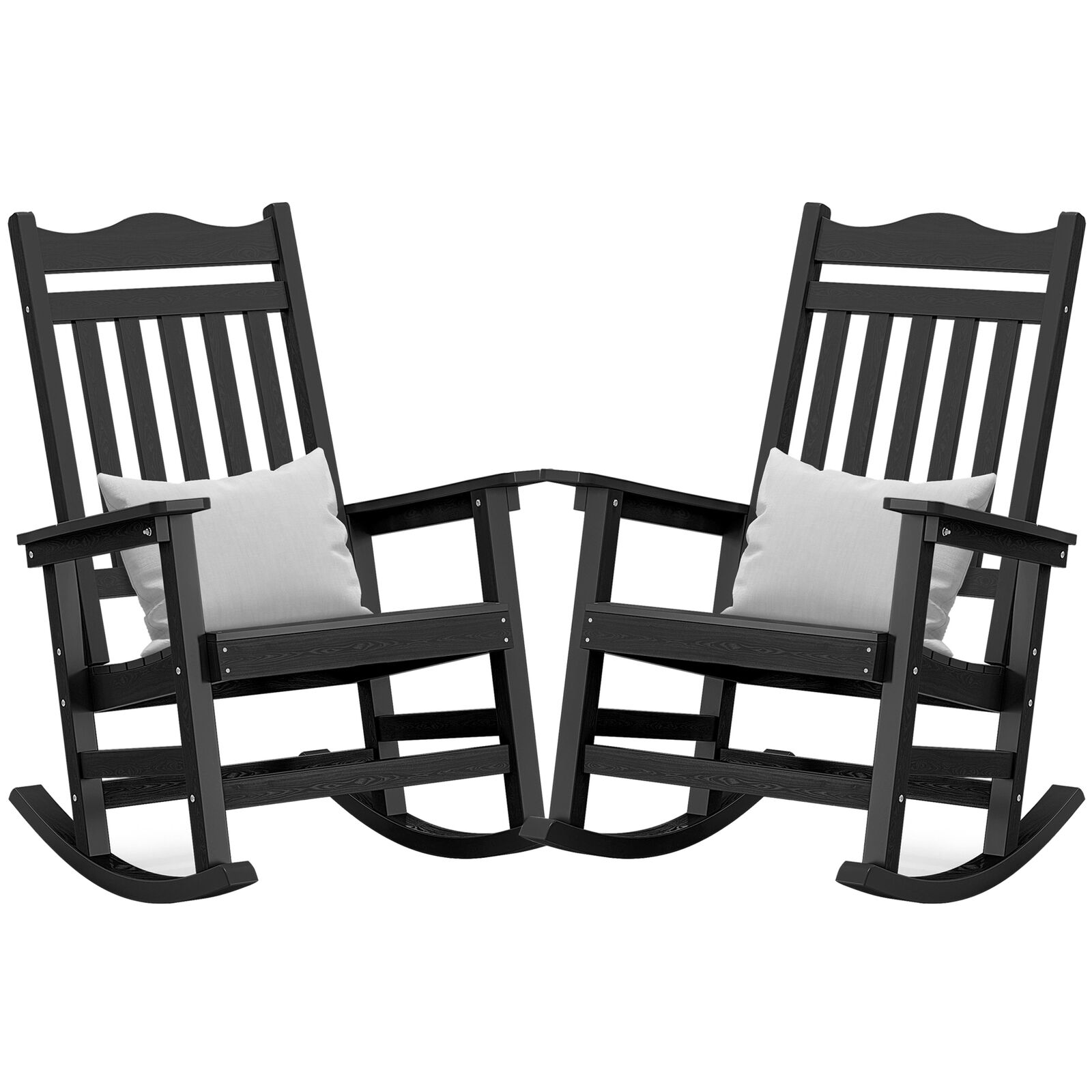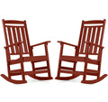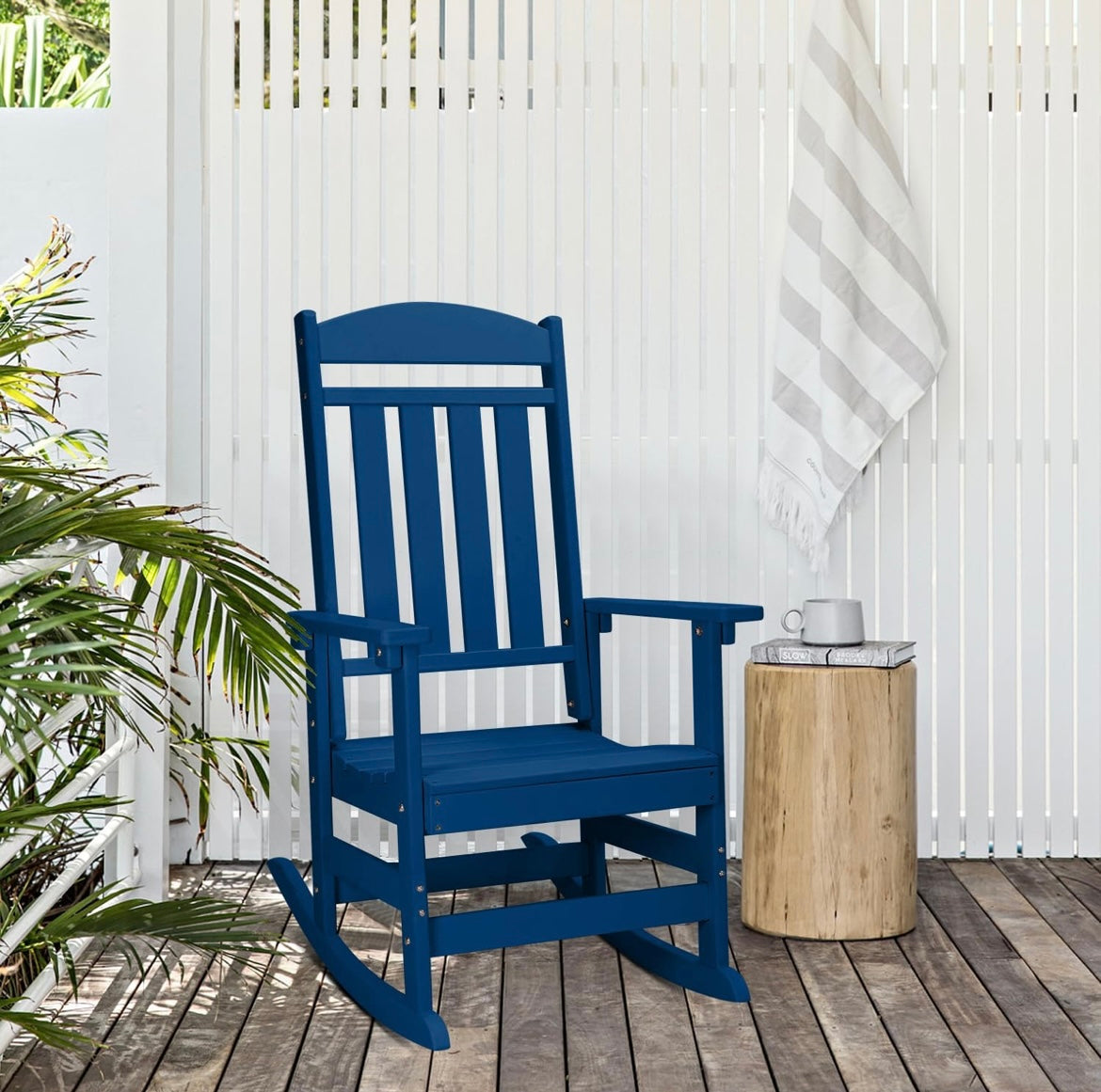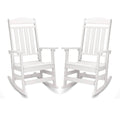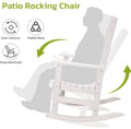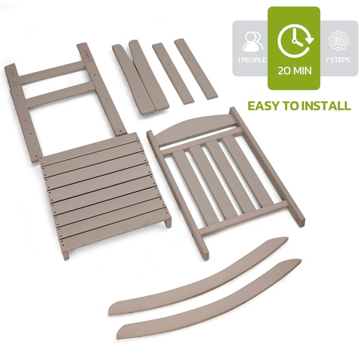 These outdoor rockers are the perfect lounging chair for the porch, patio, poolside or even the mountains. Made of high-density polyethylene, the water-resistant rocker withstands hot sun, heavy snow, torrential rain, strong coastal winds, etc. More friendly than wood: Polyethylene with woodgrain allows you to enjoy wood-like comfort but does not scratch skin like worn wood. Relax you completely: Our ergonomic porch rocking chair can rock you to nap, relieving whole-day fatigue after working. The curved high back fits your body well and widened armrest allows your arms to comfortably stretch