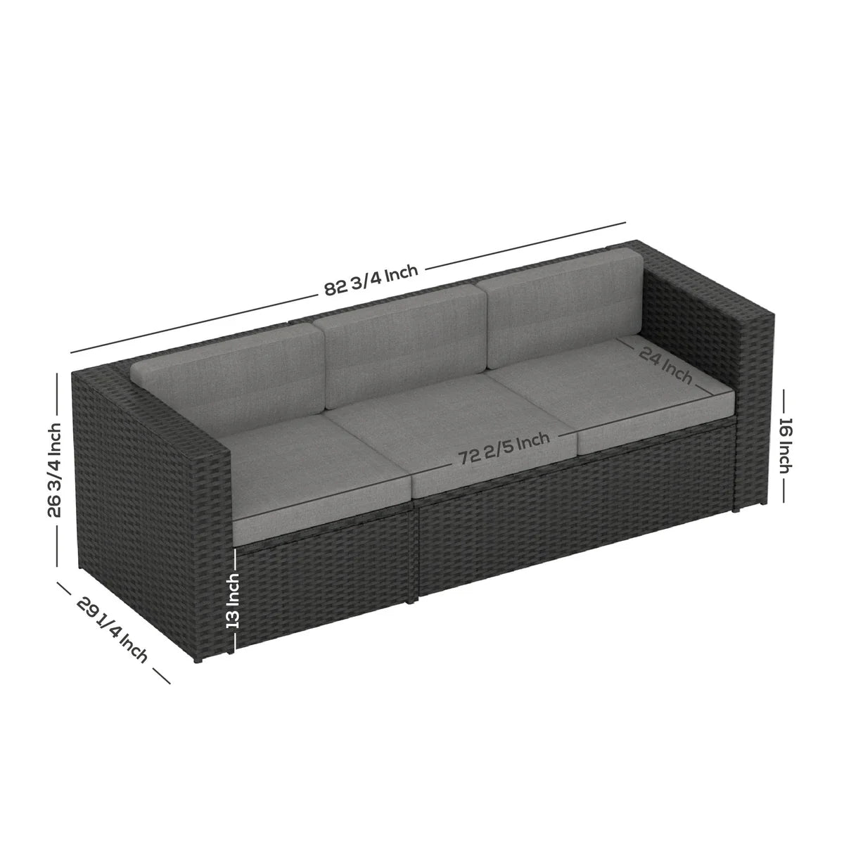 - Overall: 82.75" x 29.25" x 26.75"